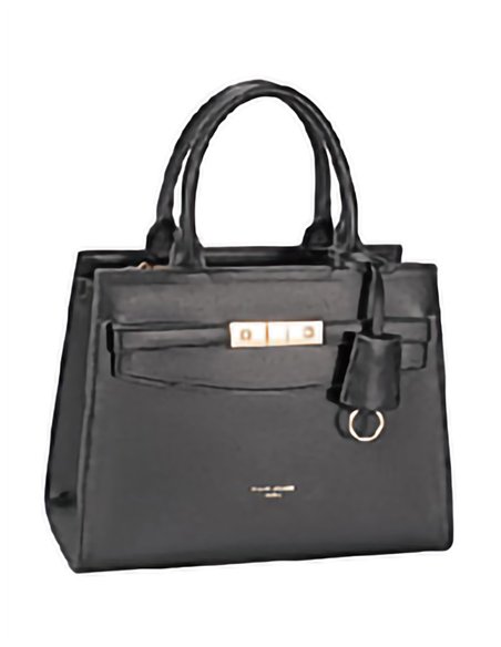 Bolso de mano de polipiel. Asas de mano. Detalle de hebilla metálica decorativa. Cierre superior con cremallera metálica.