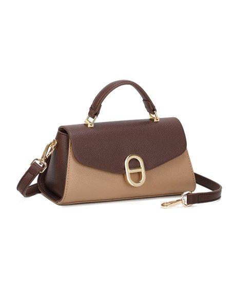 Detalles de DJ-Y5117-1 mini bolso tote bicolor solapa