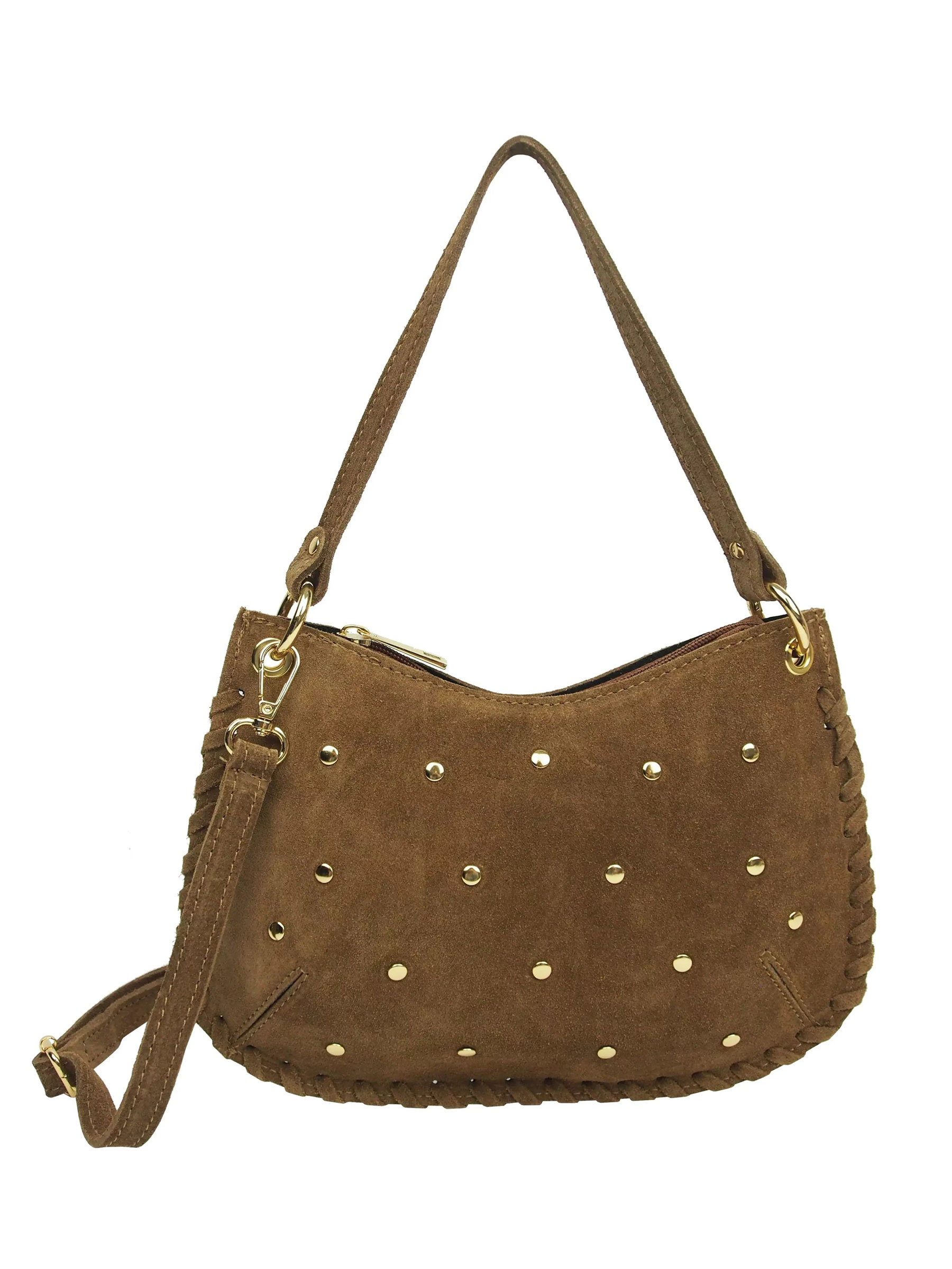 Bolso de mano piel serraje con tachas
