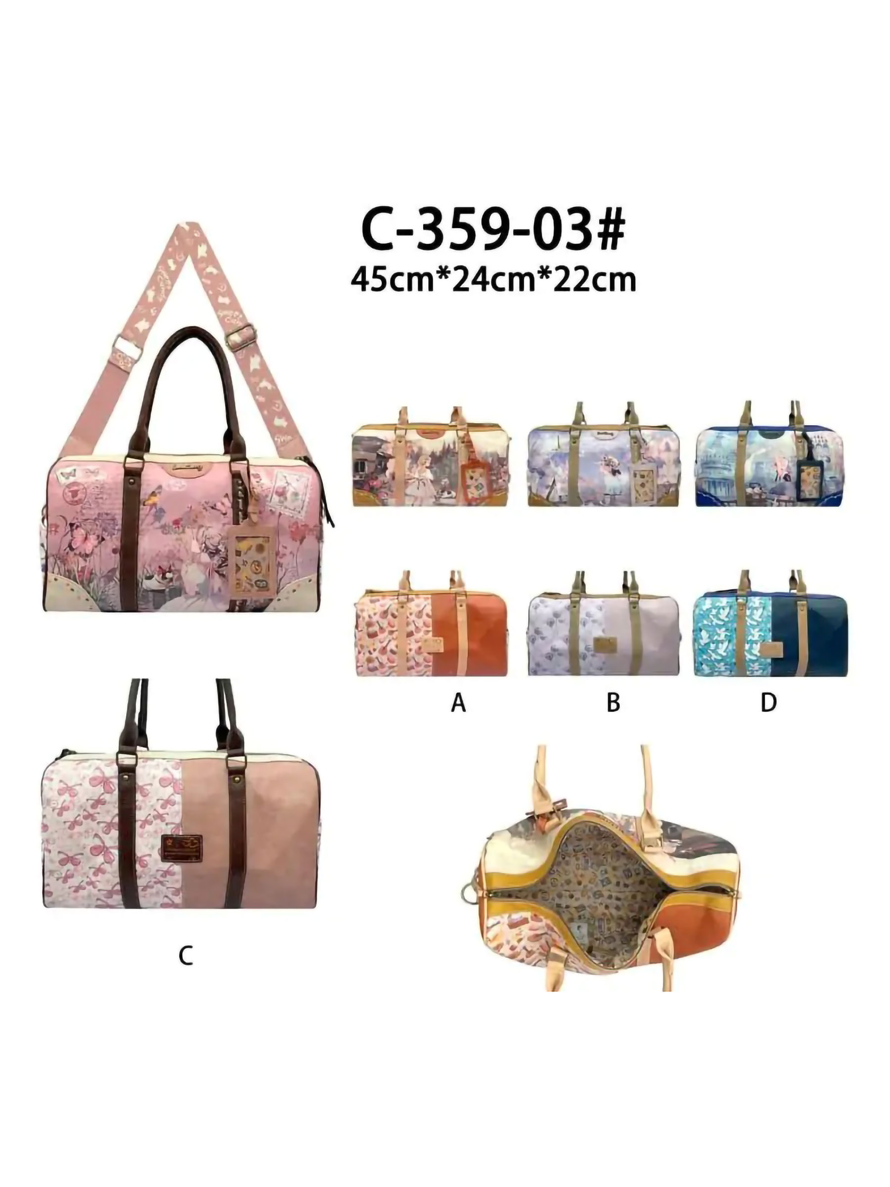 Bolso estampado formato bowling. Material polipiel. Asas de mano. Asa de hombro ajustable y extraíble. Cierre mediante cremallera metálica.