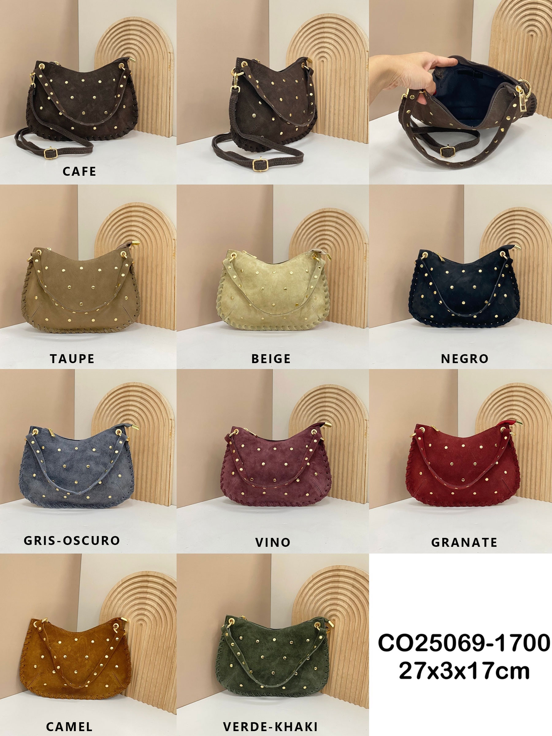 Detalles de AB-CO25069 bolso de mano piel serraje con tachas
