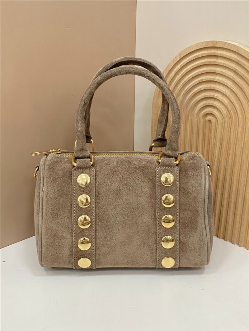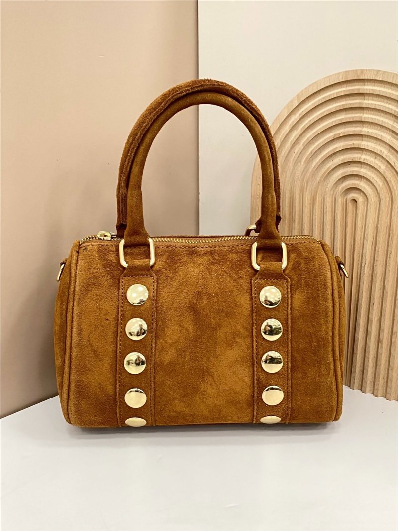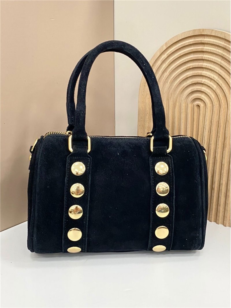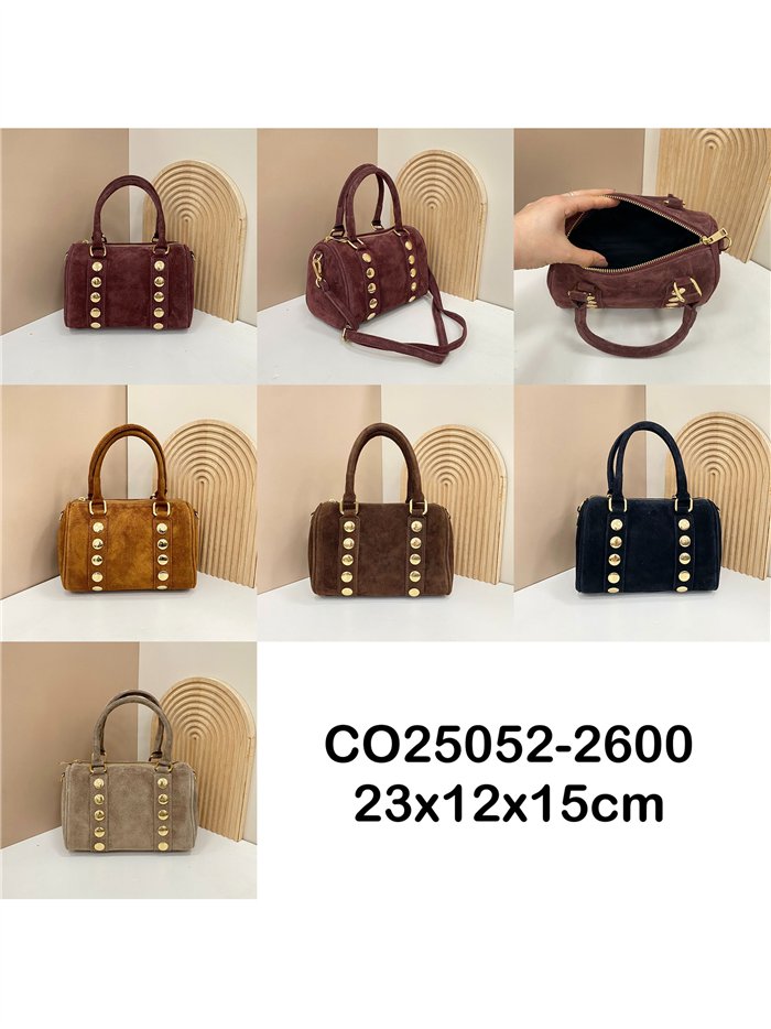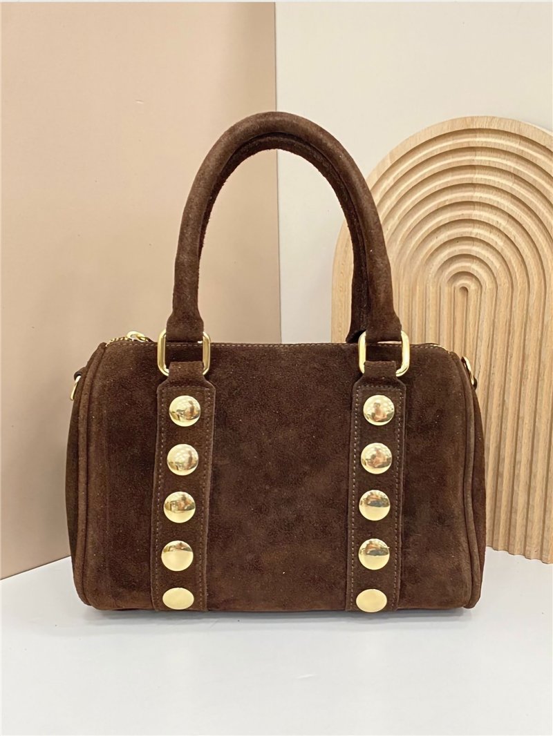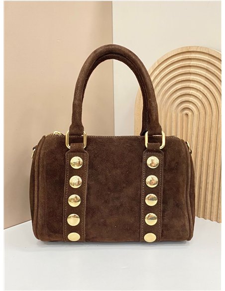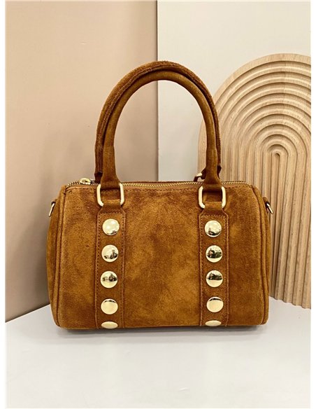 Detalles de AB-CO25052 mini bolso bowling piel serraje con tachuelas.