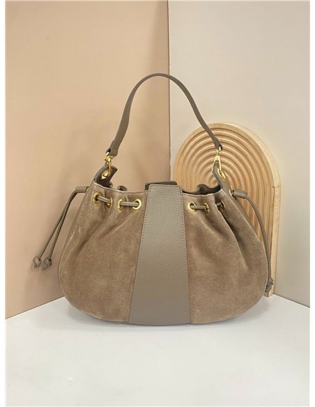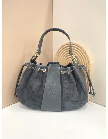 Detalles de AB-CO25096 bolso bombonera piel bicolor frunces.