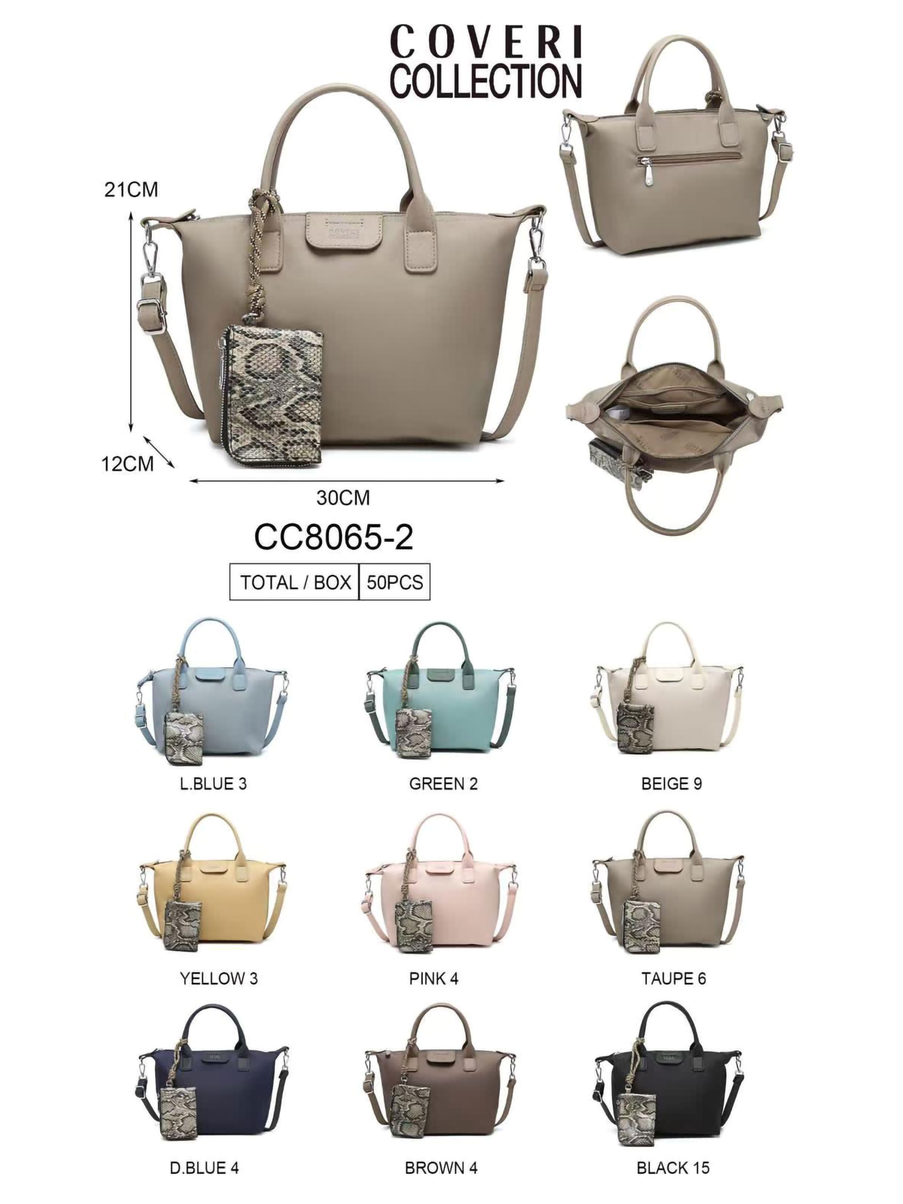 Bolso tote nylon con mini monedero estampado serpiente