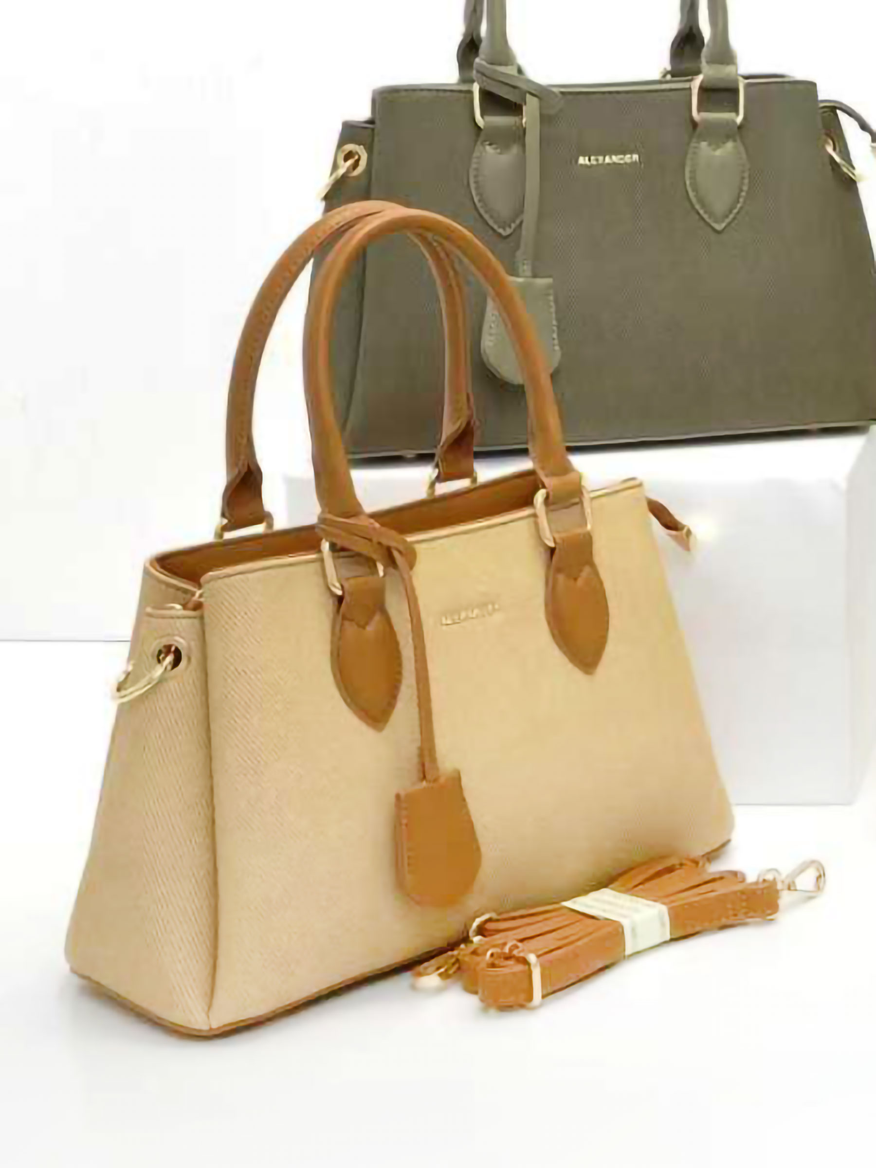 Bolso de mano combinado tipo satchel con colgante