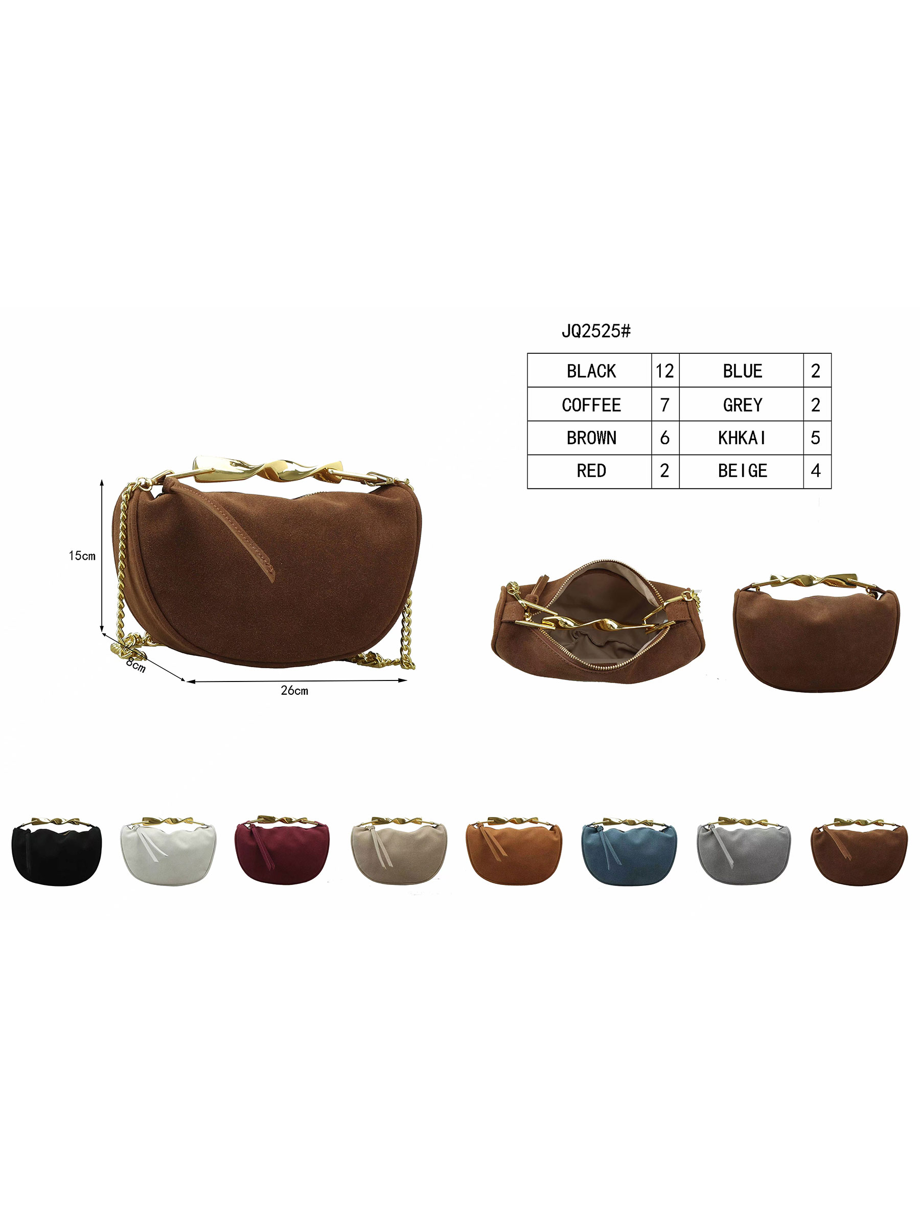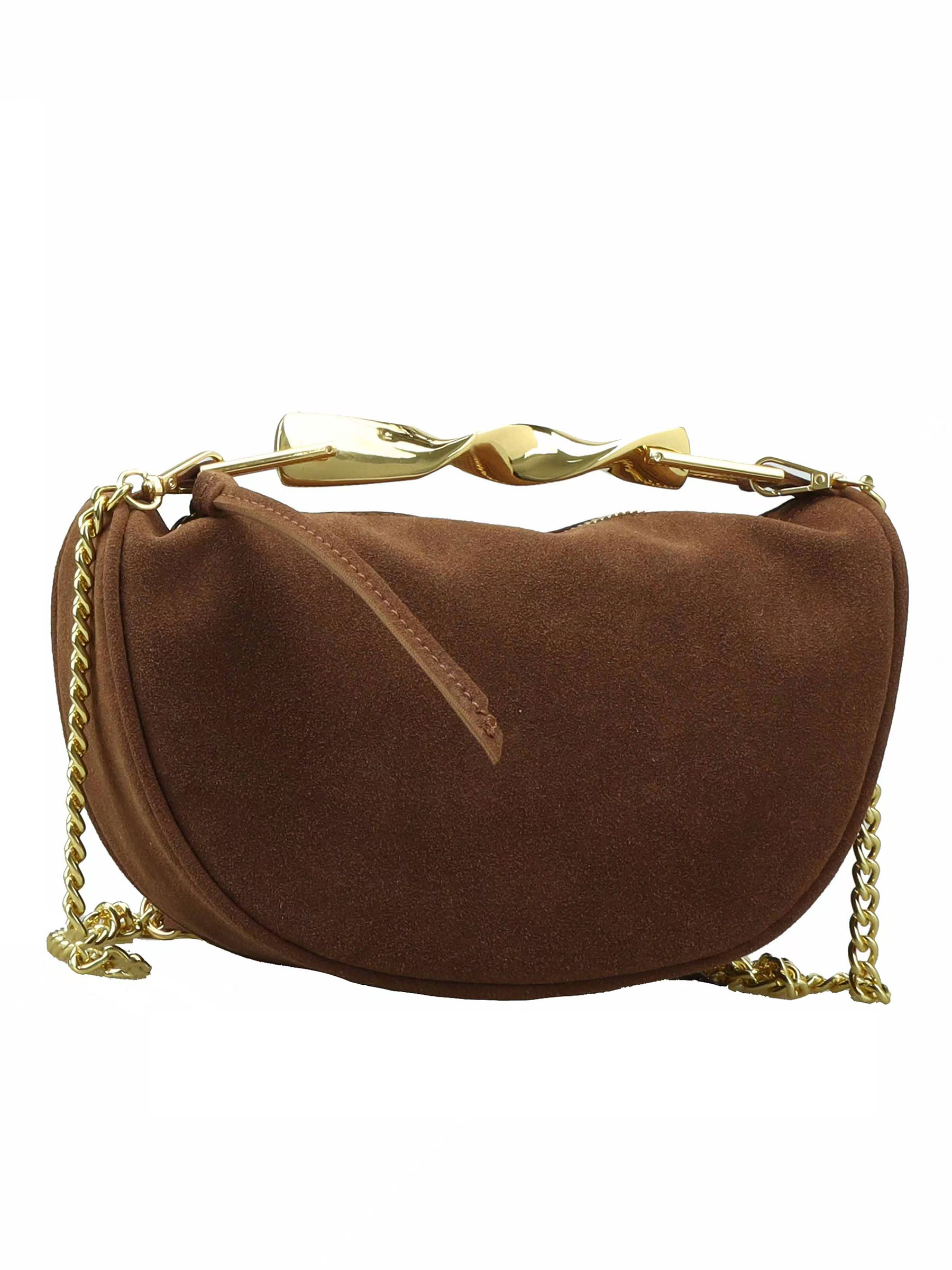 Bolso media luna efecto ante con asa joya