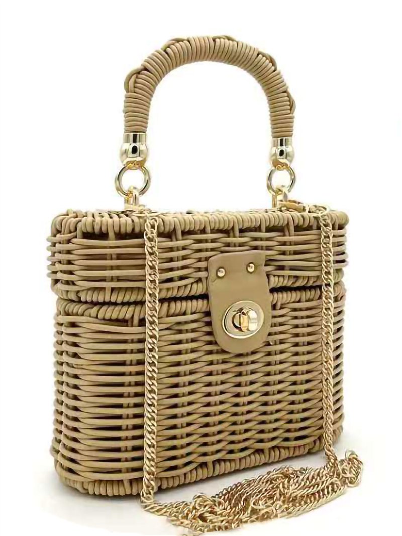 Bolso caja de rafia con cadena
