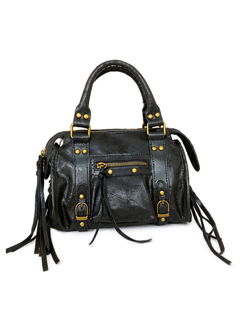 Bolso bowling de piel con flecos y tachuelas