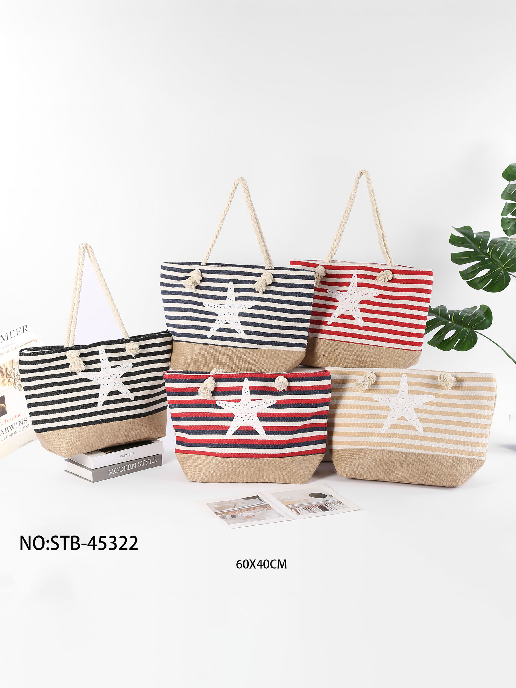 Bolso de playa rayas con estrella de mar