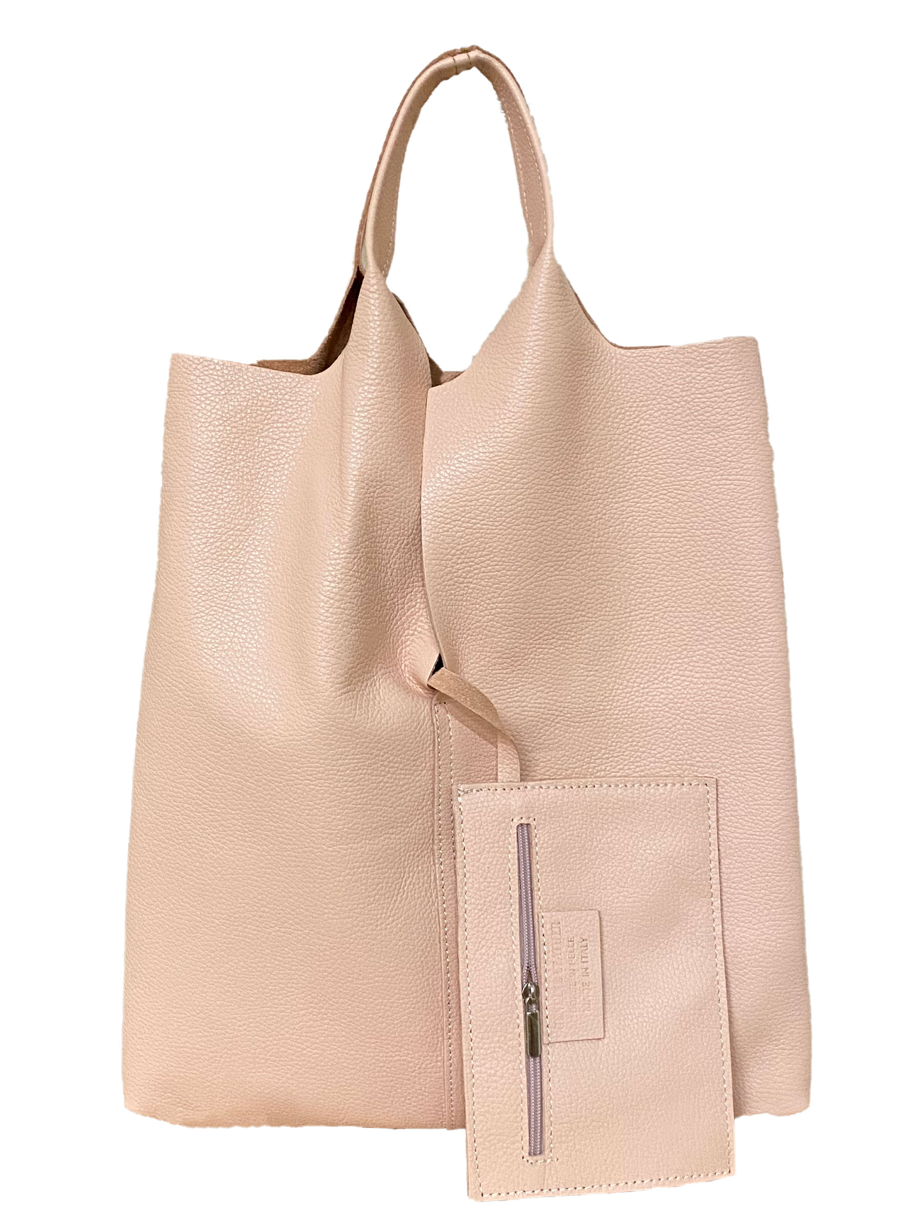 Shopper de piel. Bolso formato sobre con cierre mediante cremallera metálica. Asas de mano. Fabricado en Italia.