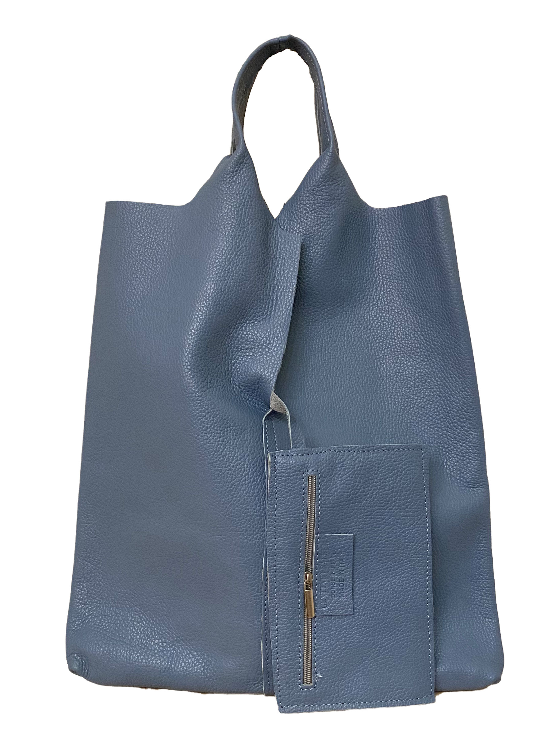 Bolso shopper piel + Sobre 2 piezas azul-vaquero