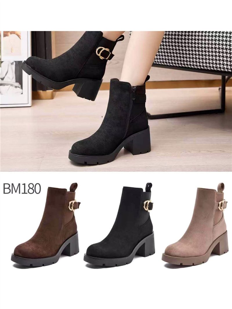 Detalles de botín de tacón efecto ante con hebilla trasera HQ-BM180