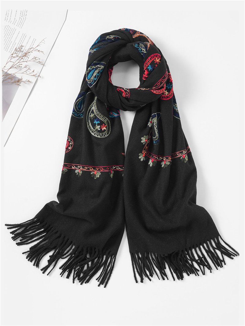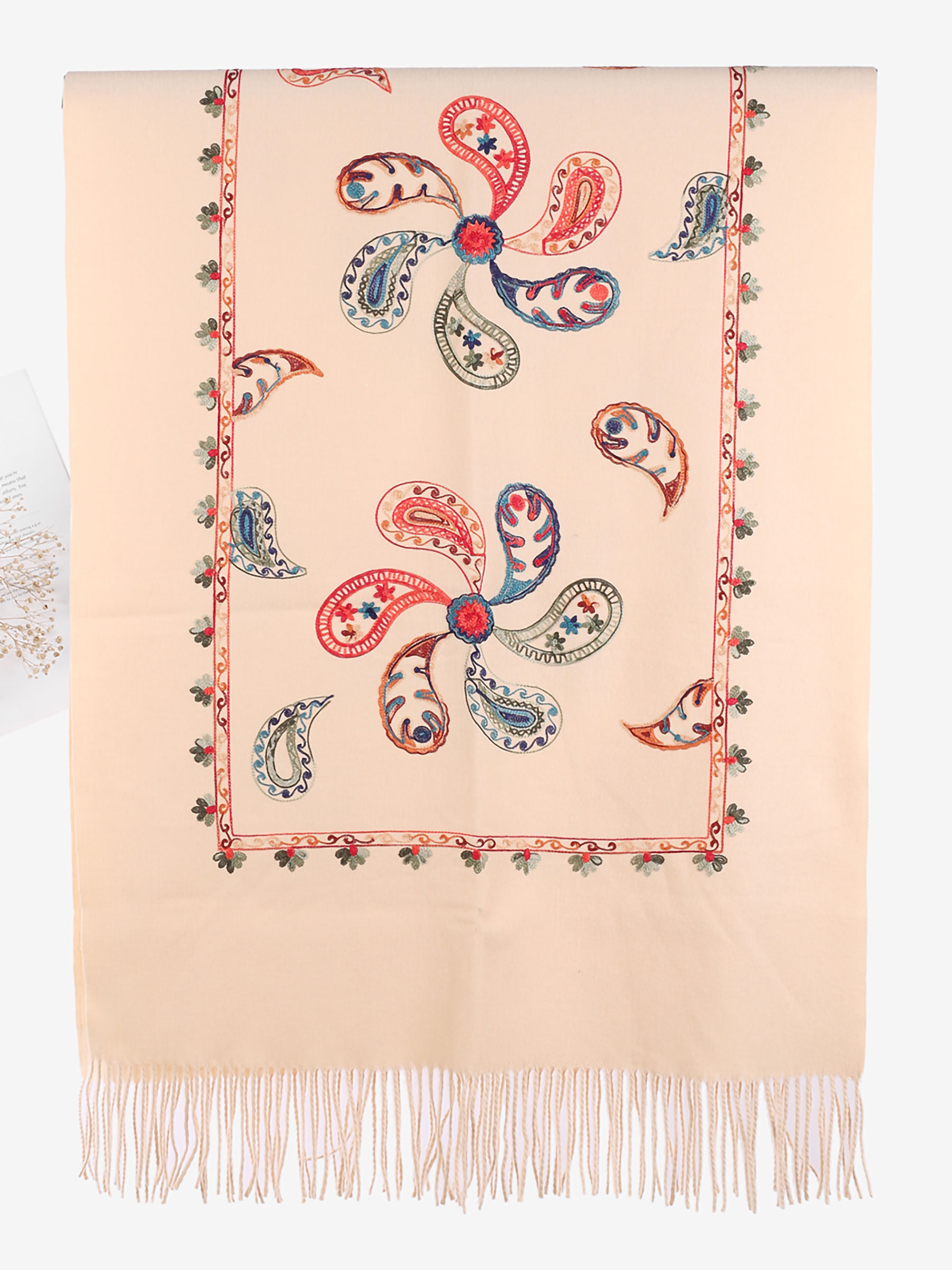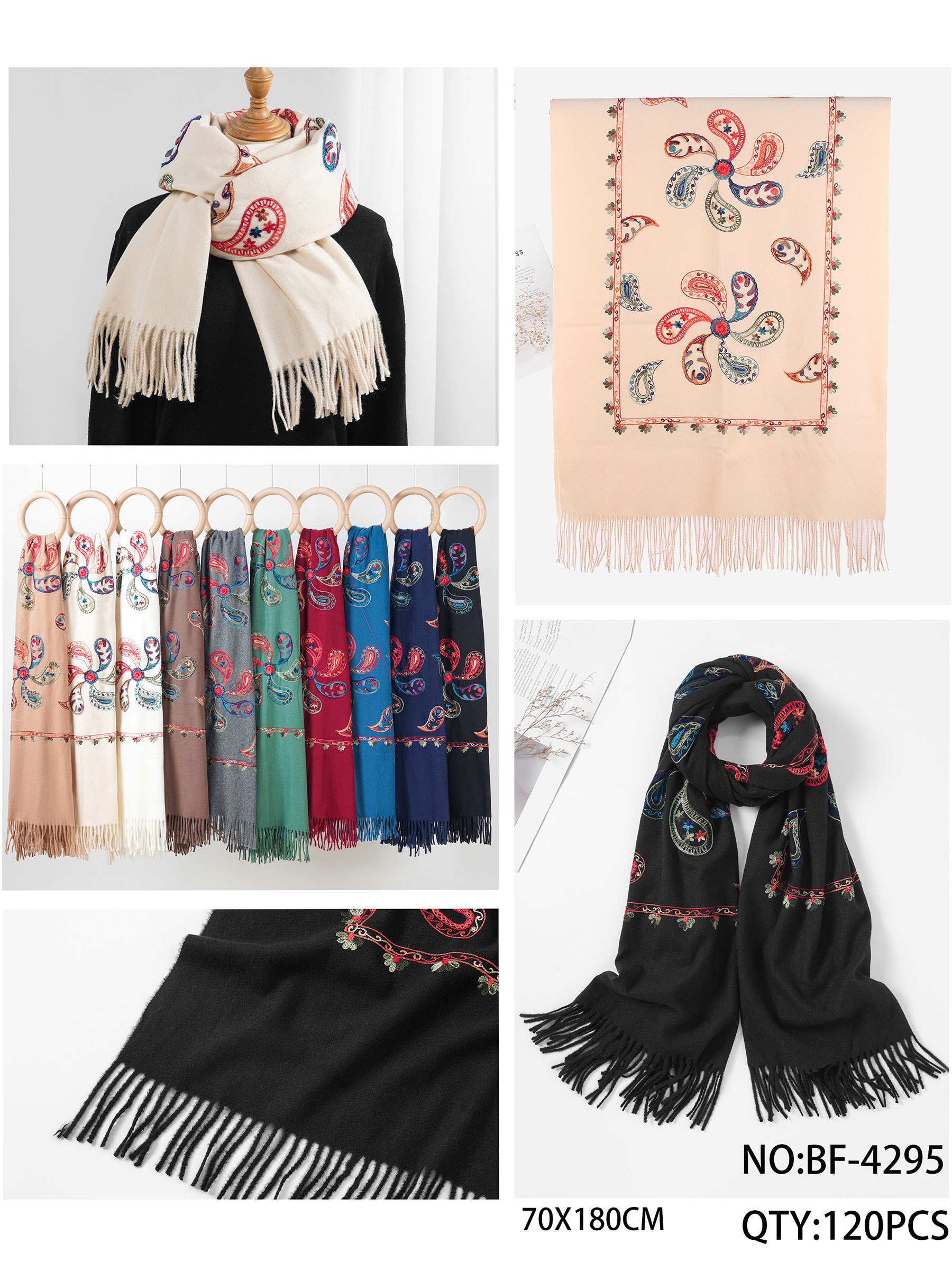 Detalles de bufanda bordada cachemir flecos BF-BF-4295