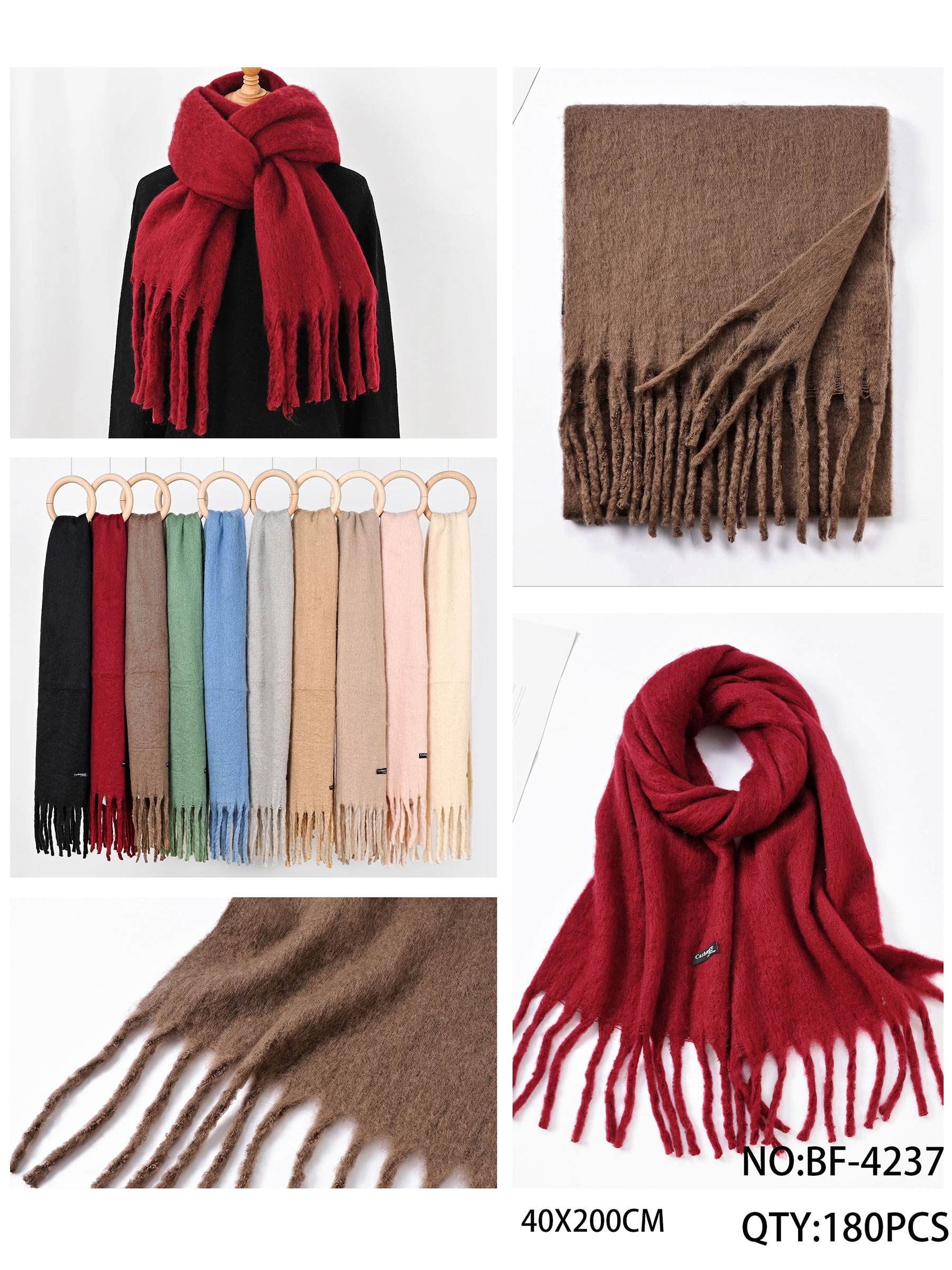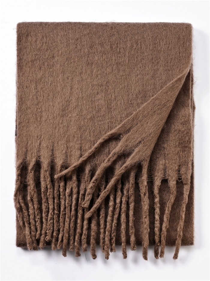 Bufanda detalle de flecos. Punto grueso con pelo. Tacto suave.