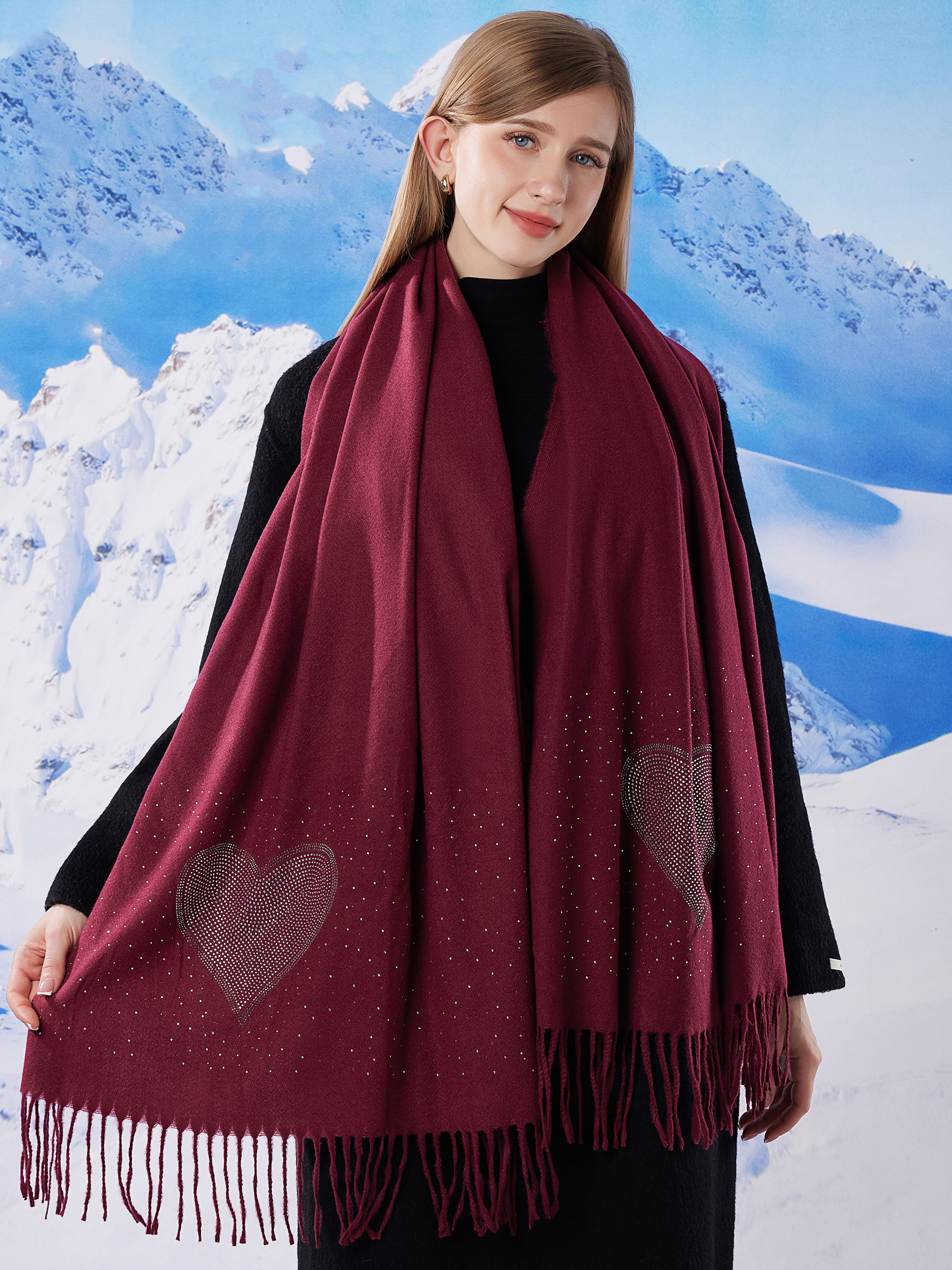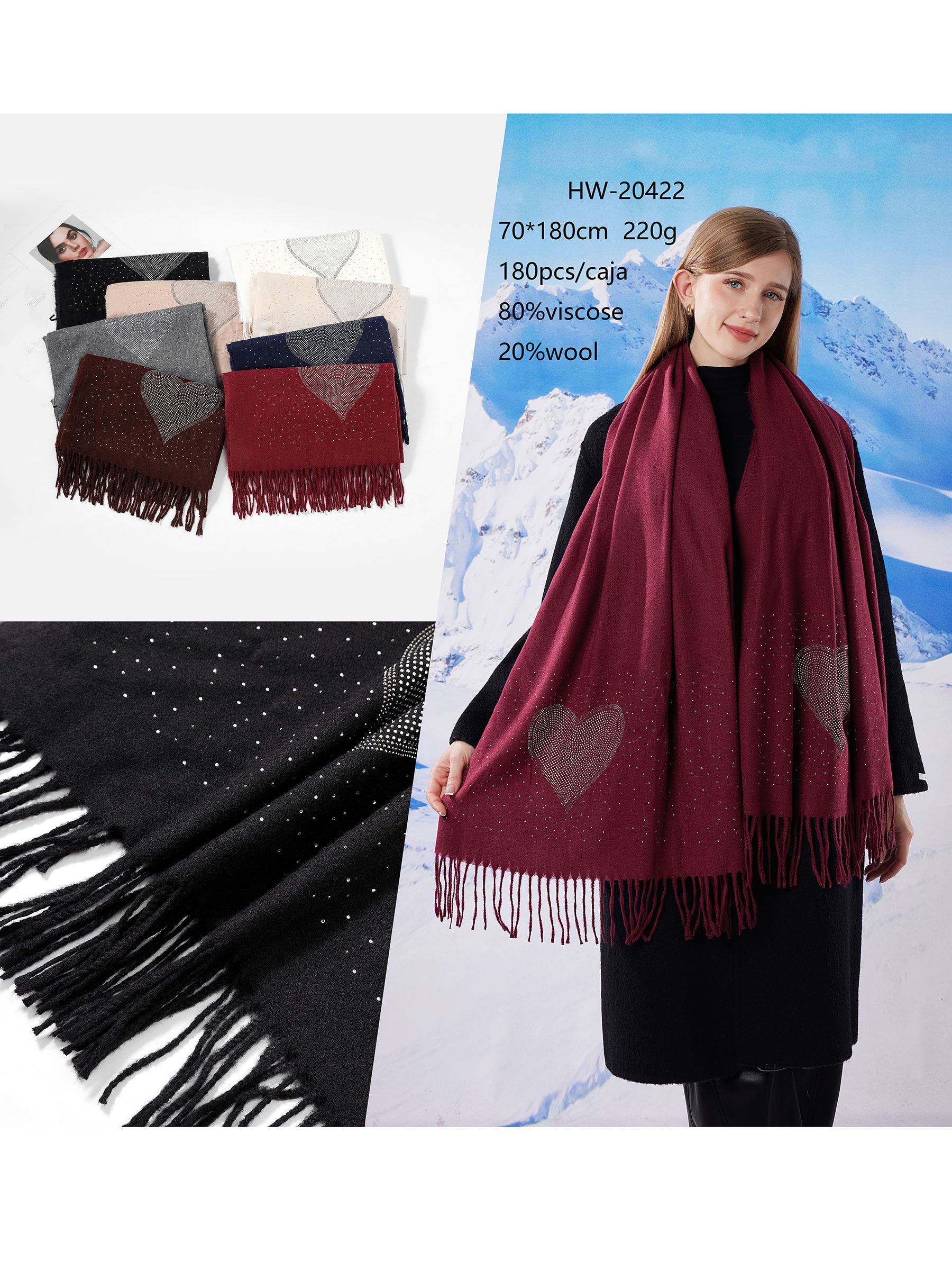 Detalles de bufanda corazón strass flecos HY-HW-20422