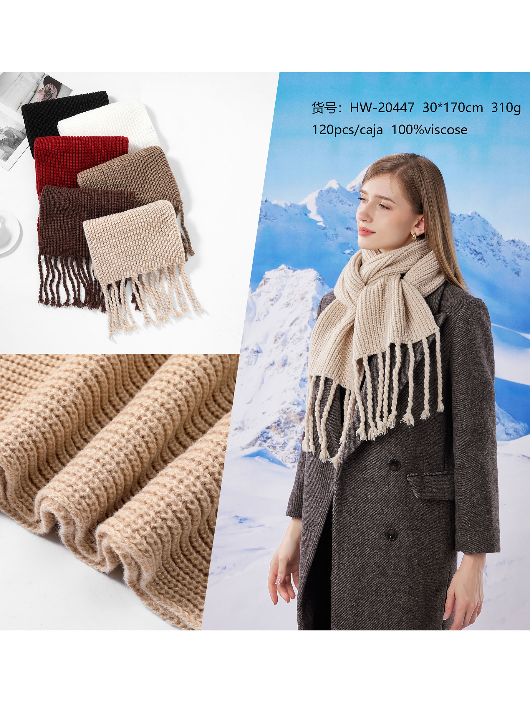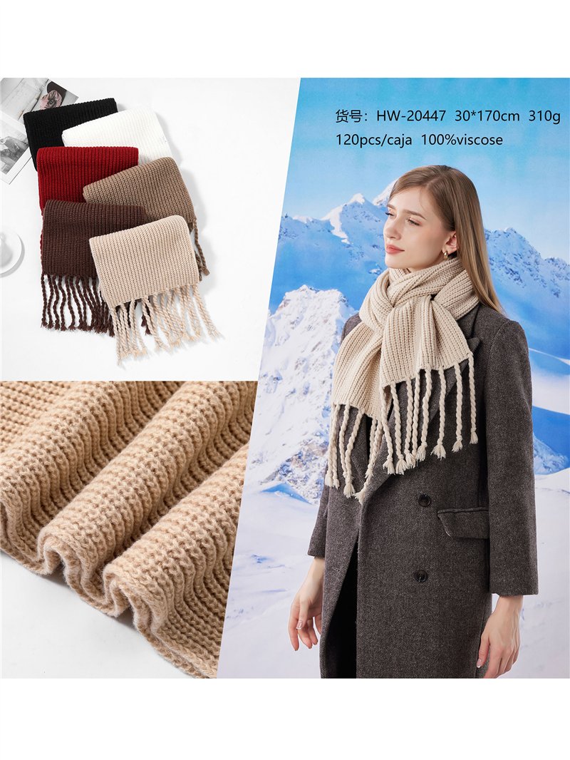Detalles de bufanda punto grueso flecos HY-HW-20447