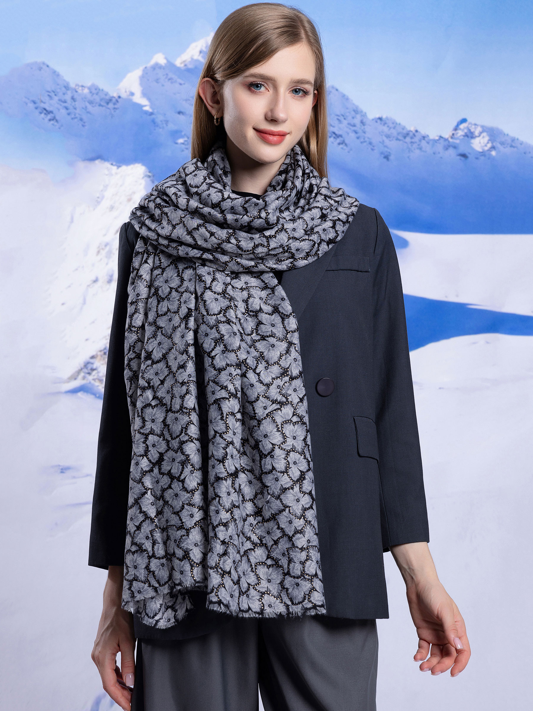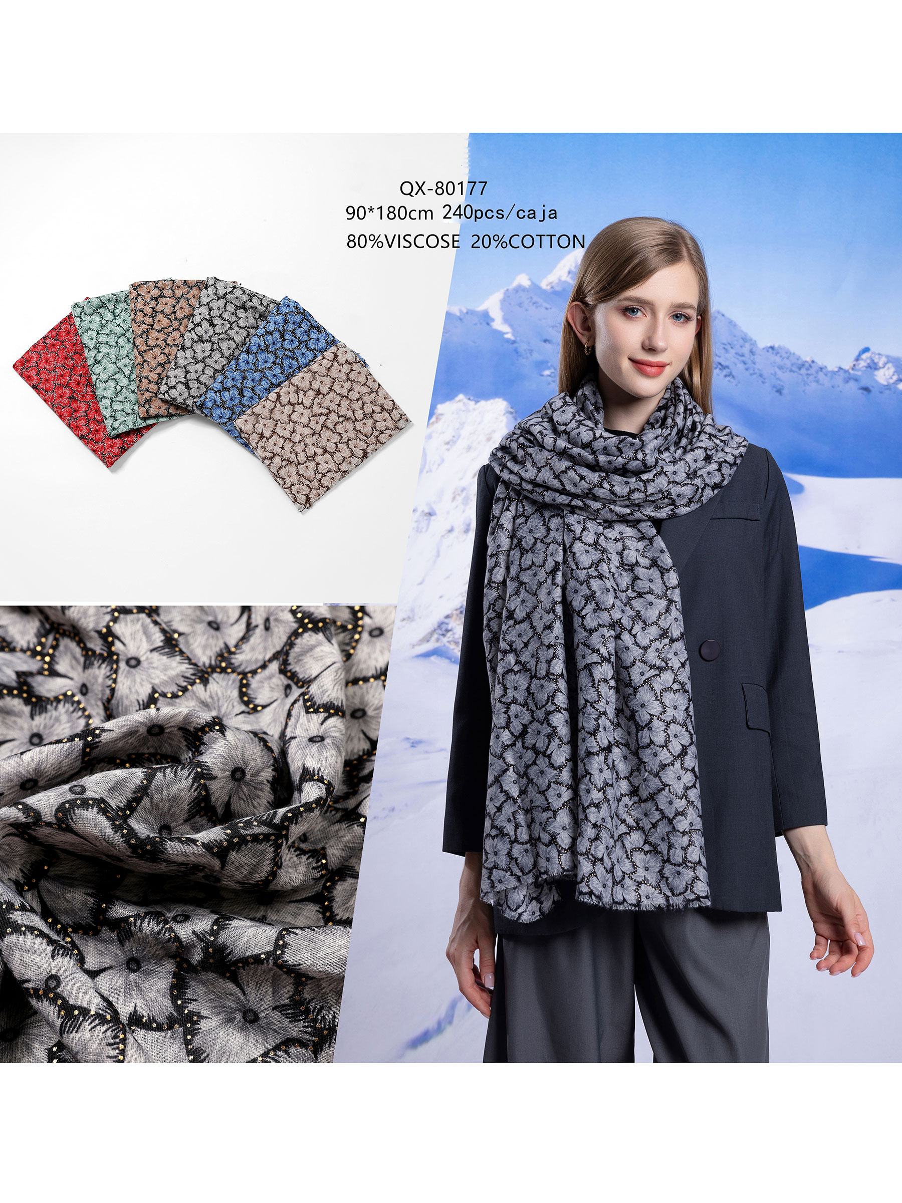Detalles de bufanda estampada metalizada HY-QX-80177