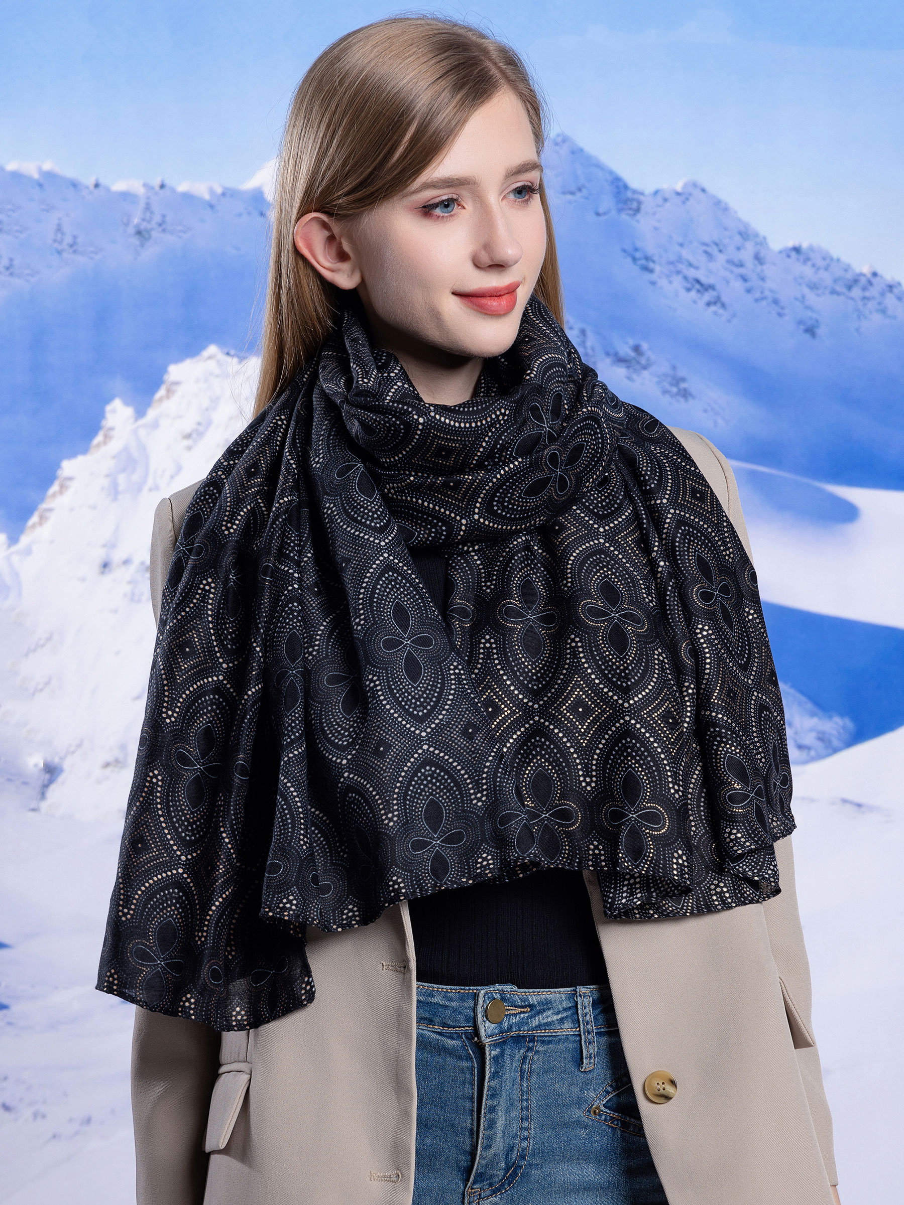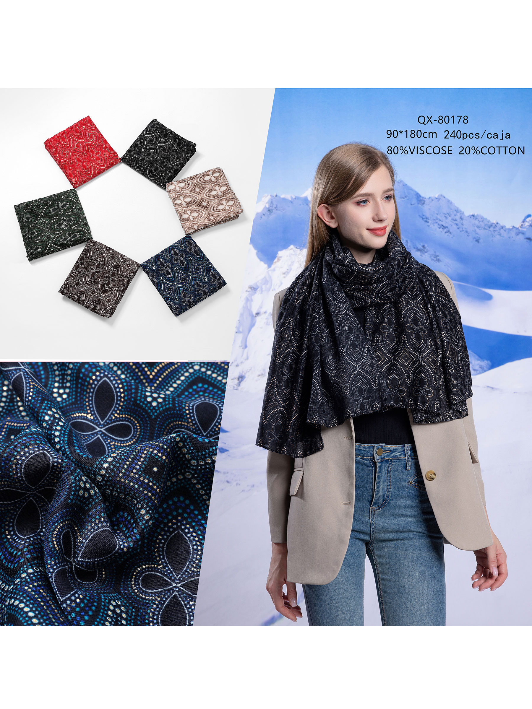 Detalles de bufanda estampada metalizada HY-QX-80178