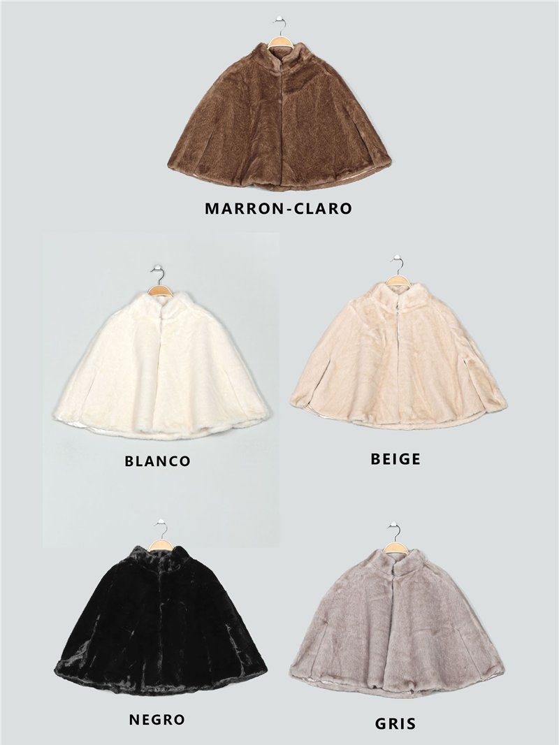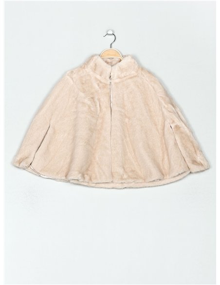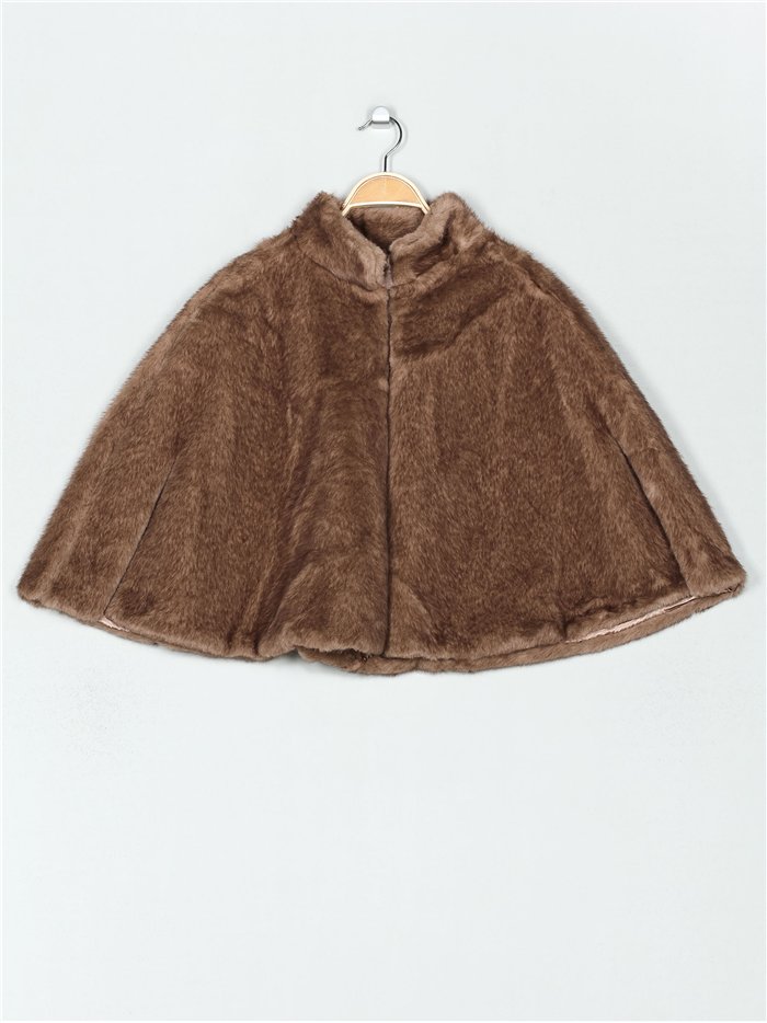 Chaqueta efecto pelo tipo capa. Cierre mediante corchete.