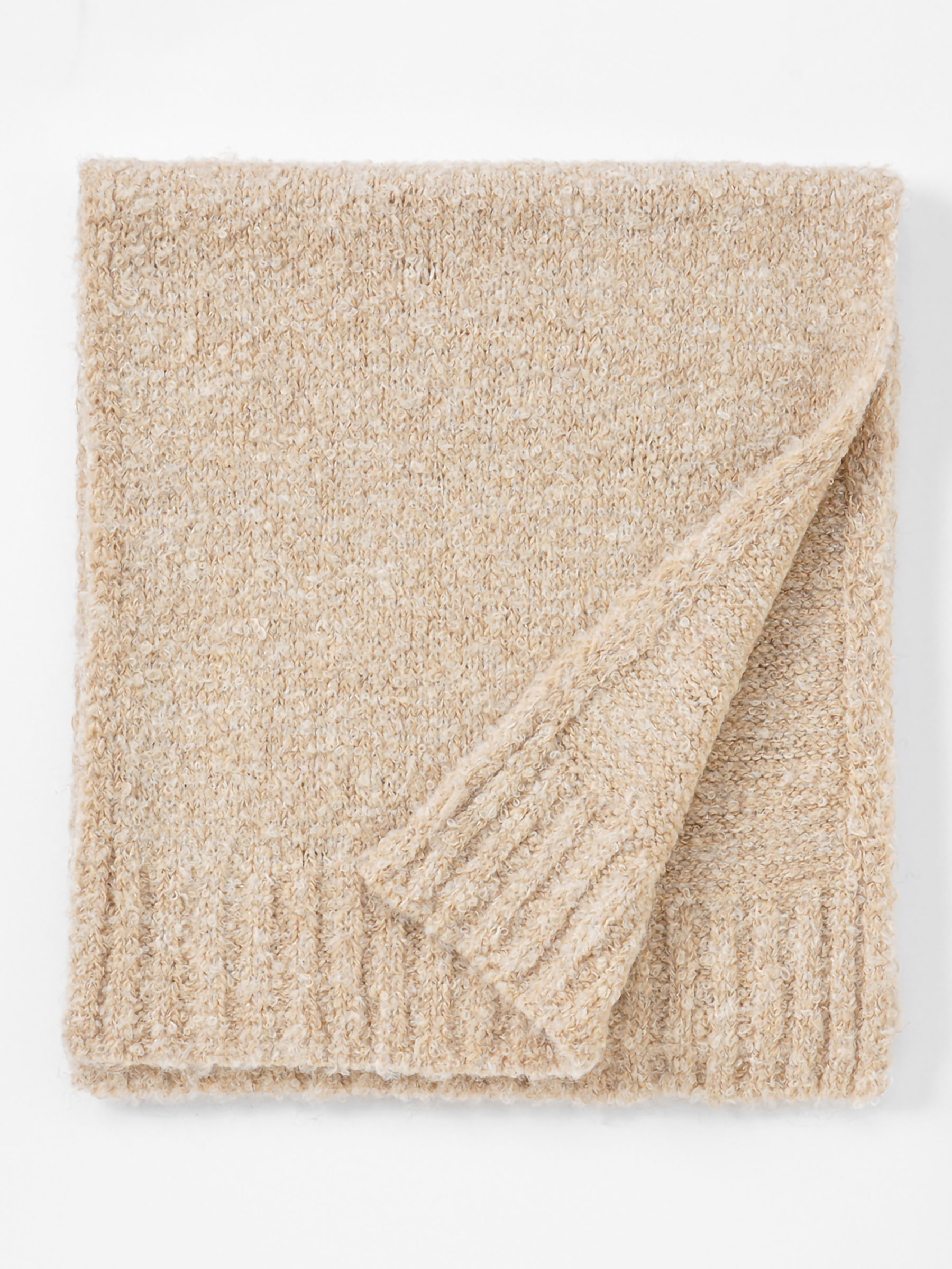 Bufanda de punto bouclé con tacto suave, diseño jaspeado y extremos acanalados.