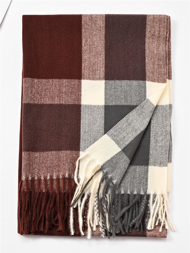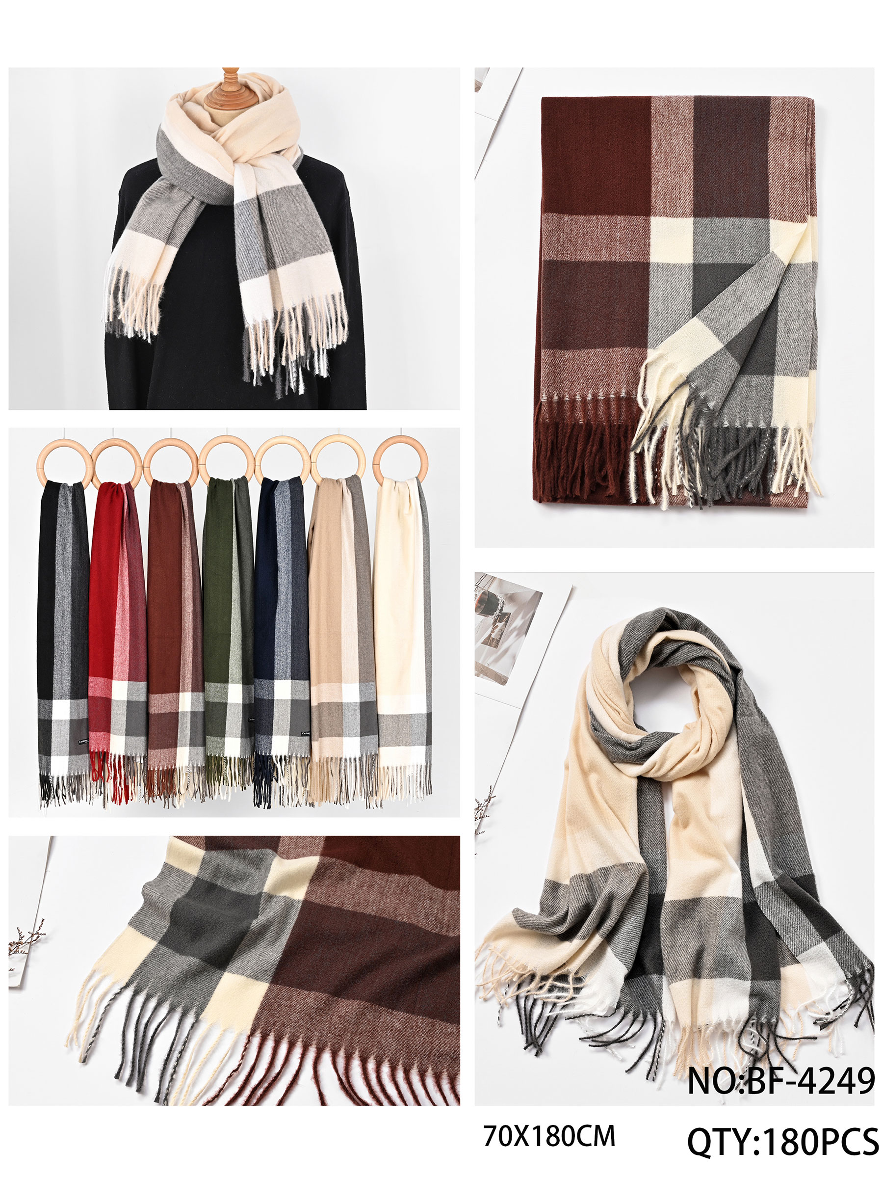 Detalles de bufanda cuadros con flecos BF-BF-4249