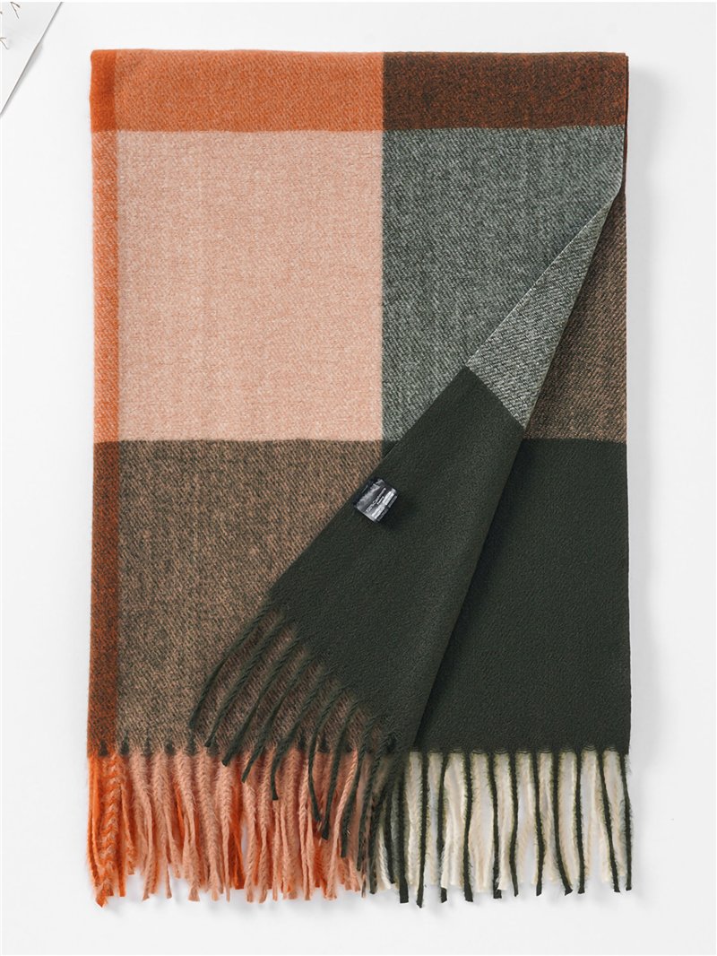 Bufanda de cuadros con flecos. Tacto suave.