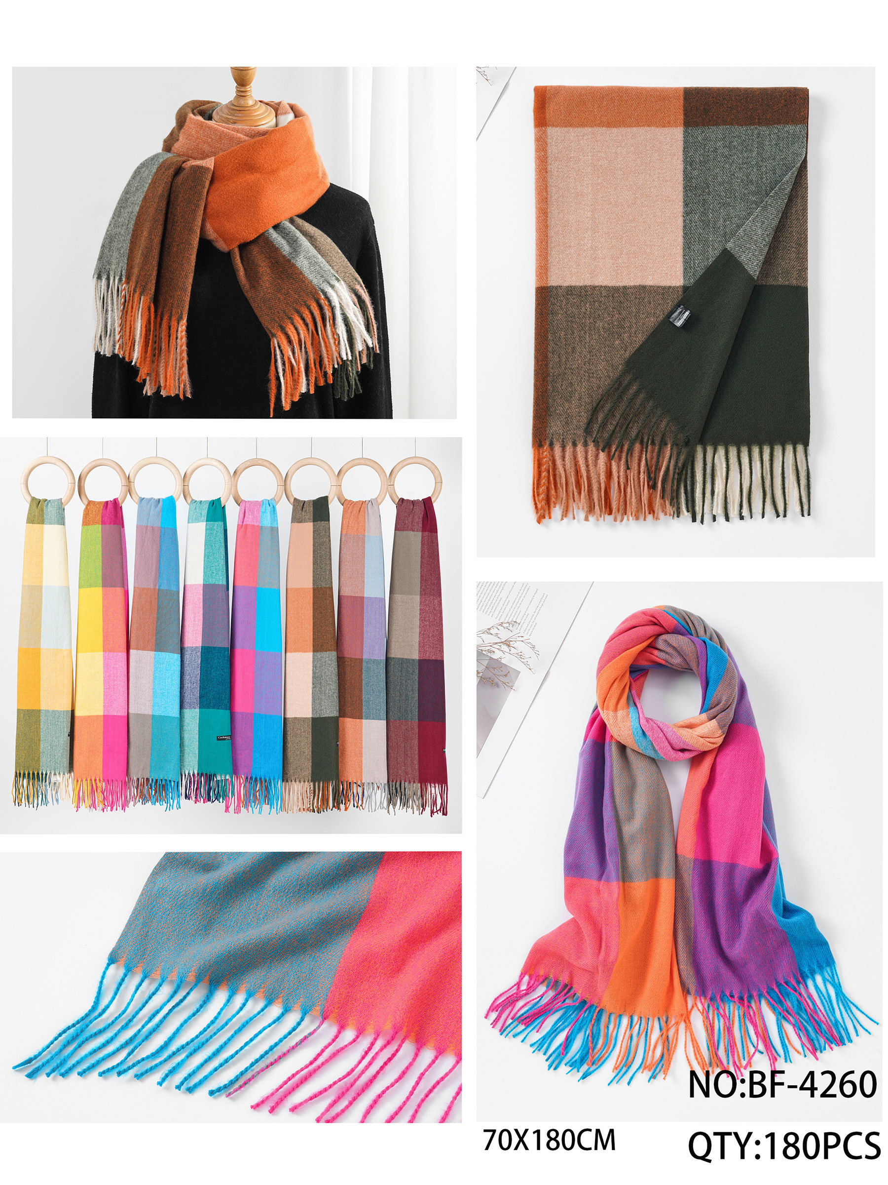 Detalles de bufanda cuadros con flecos BF-BF-4260