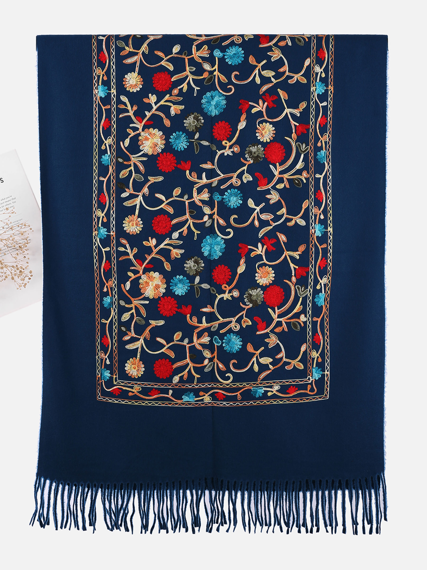 Detalles de bufanda bordada floral con flecos BF-BF-4292