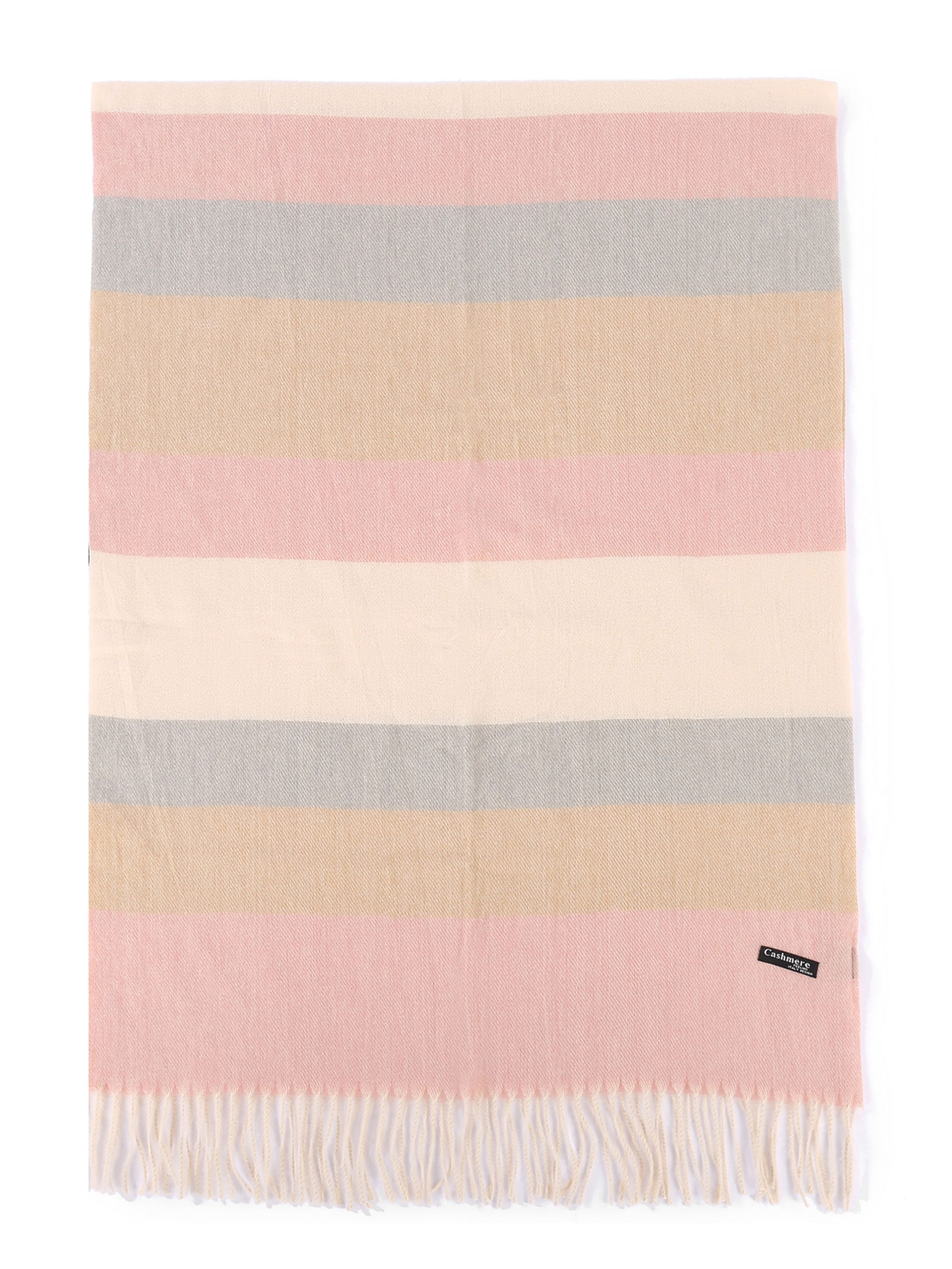 Bufanda de rayas anchas en tonos empolvados con flecos.