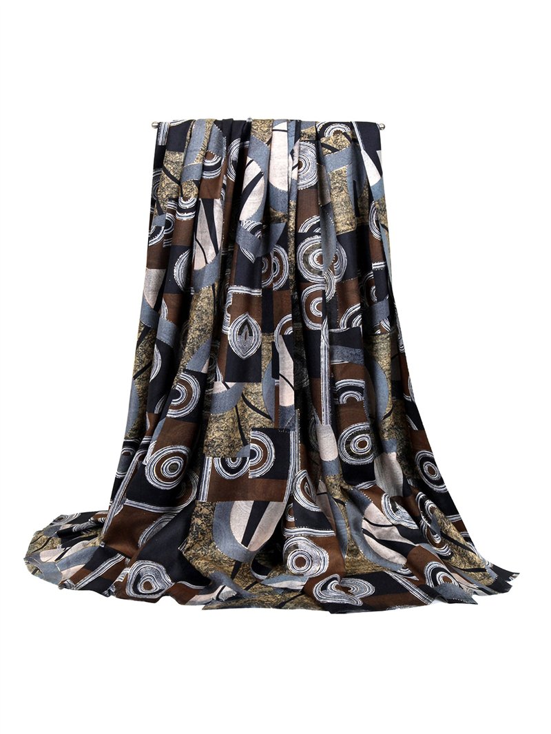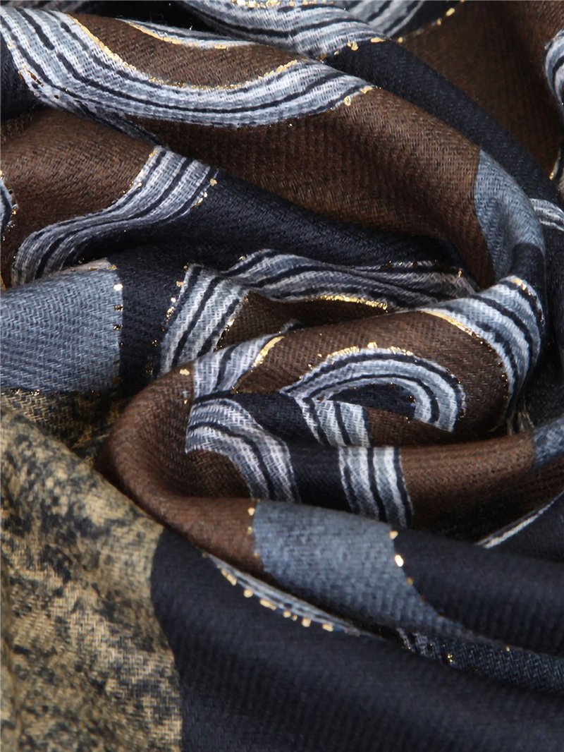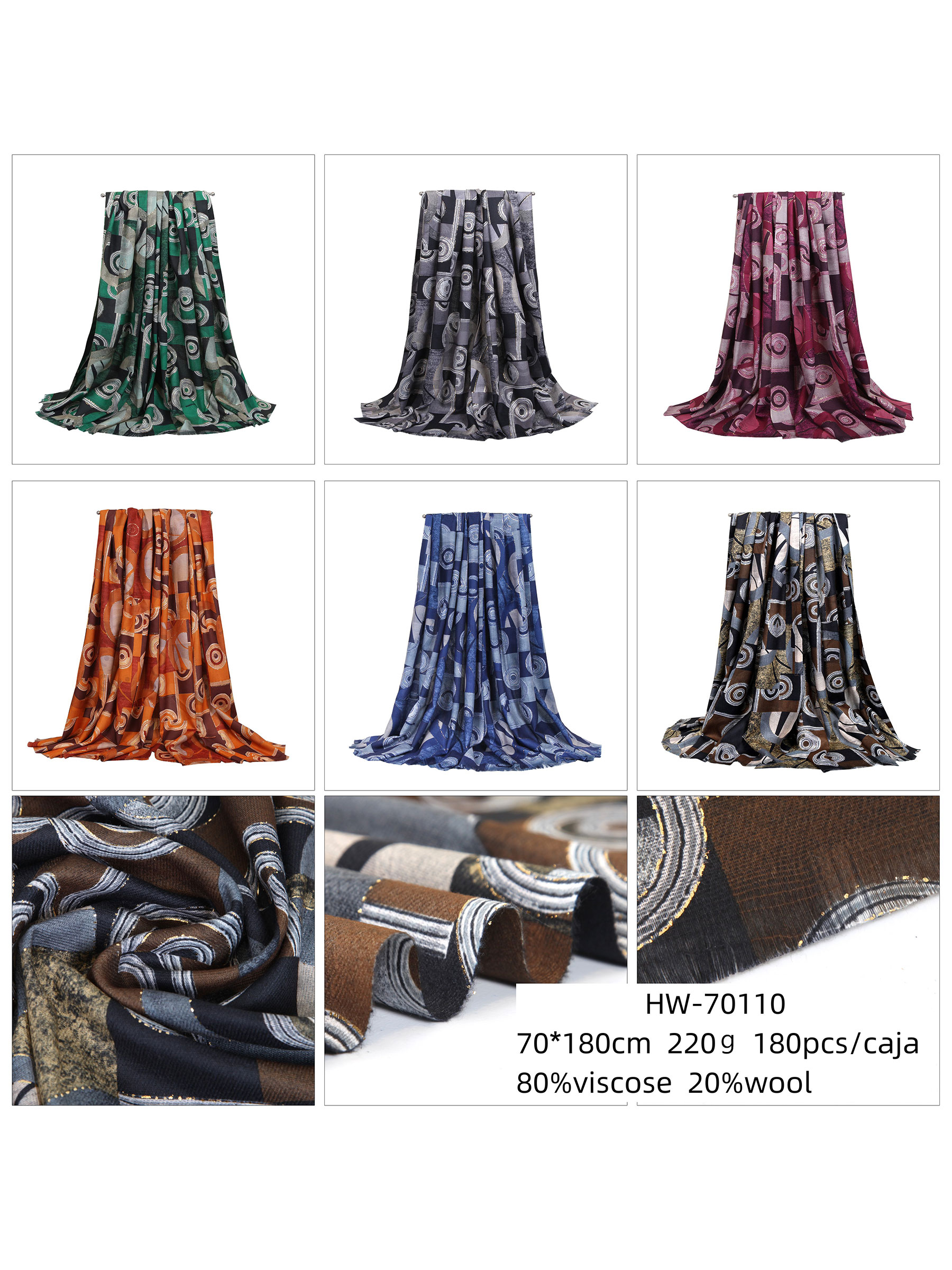 Detalles de bufanda estampado geométrico con brillo dorado HY-HW-70110