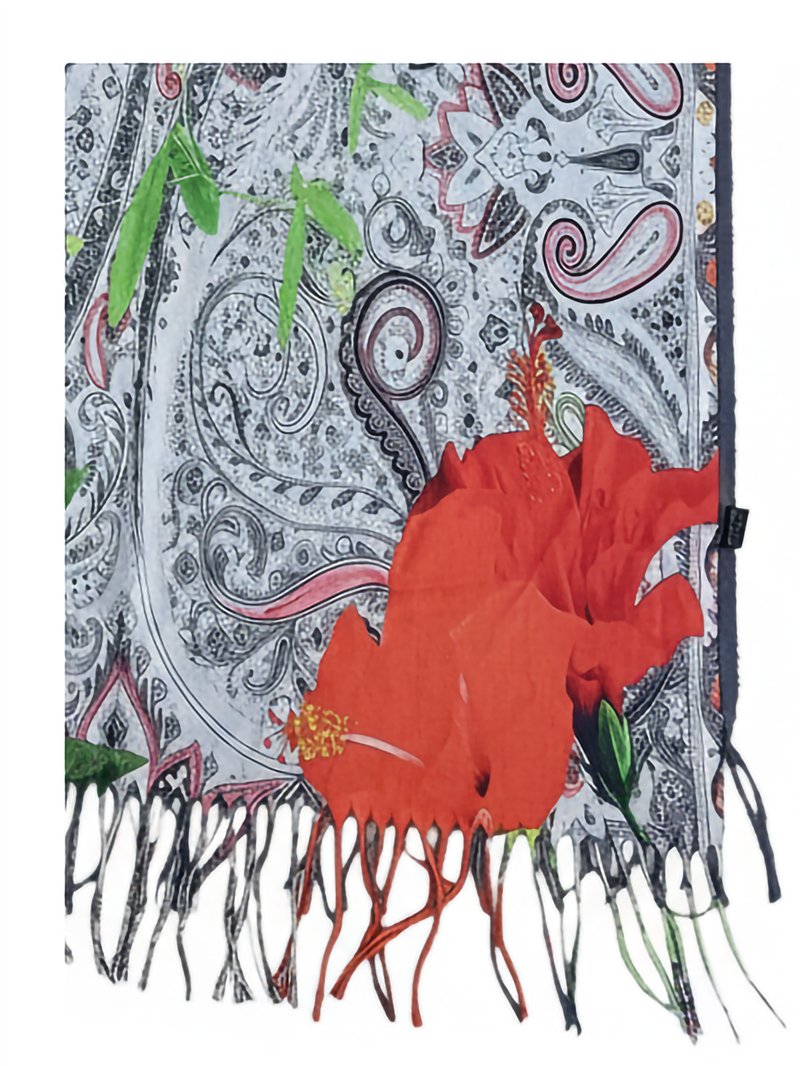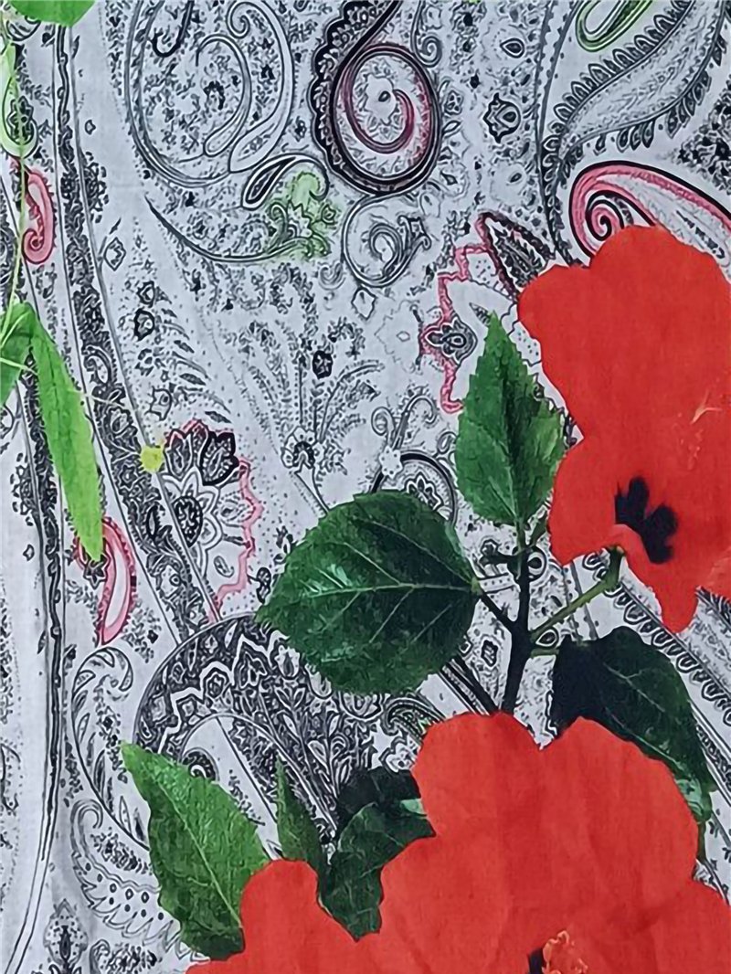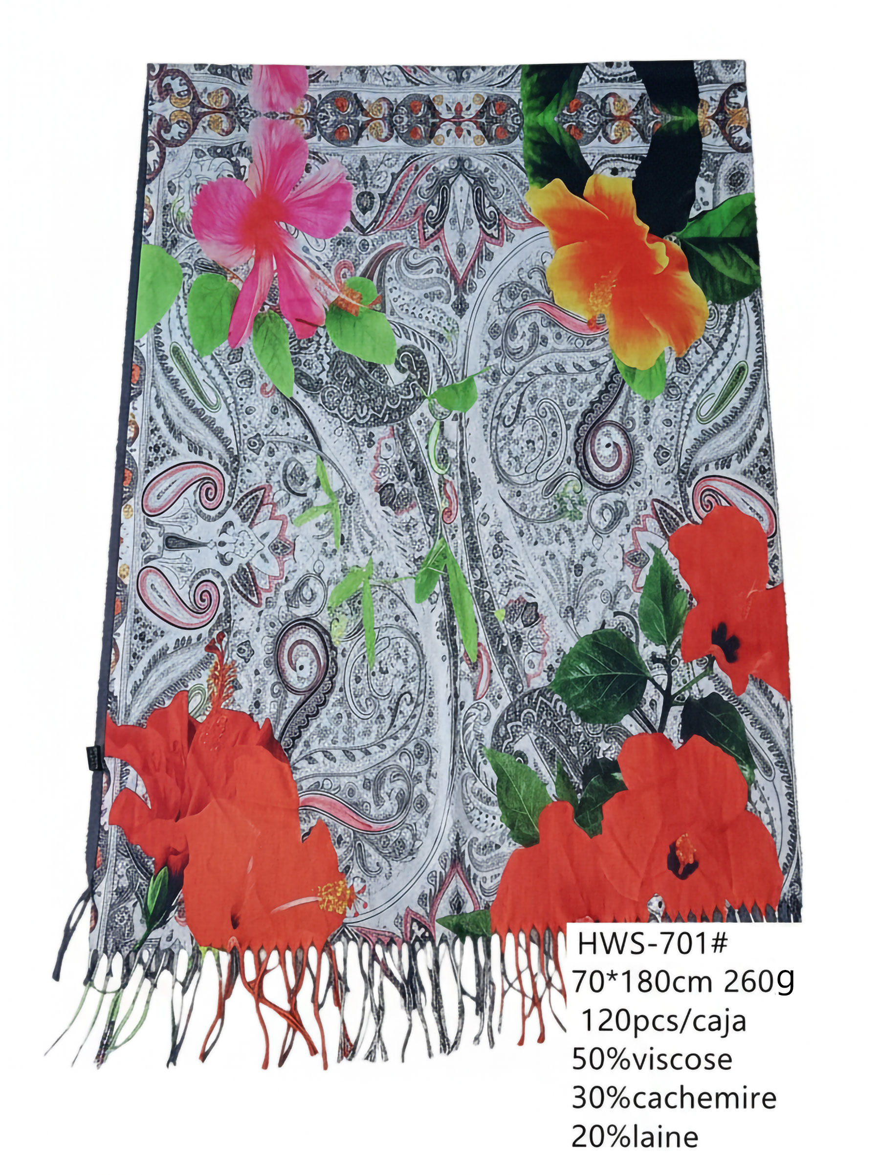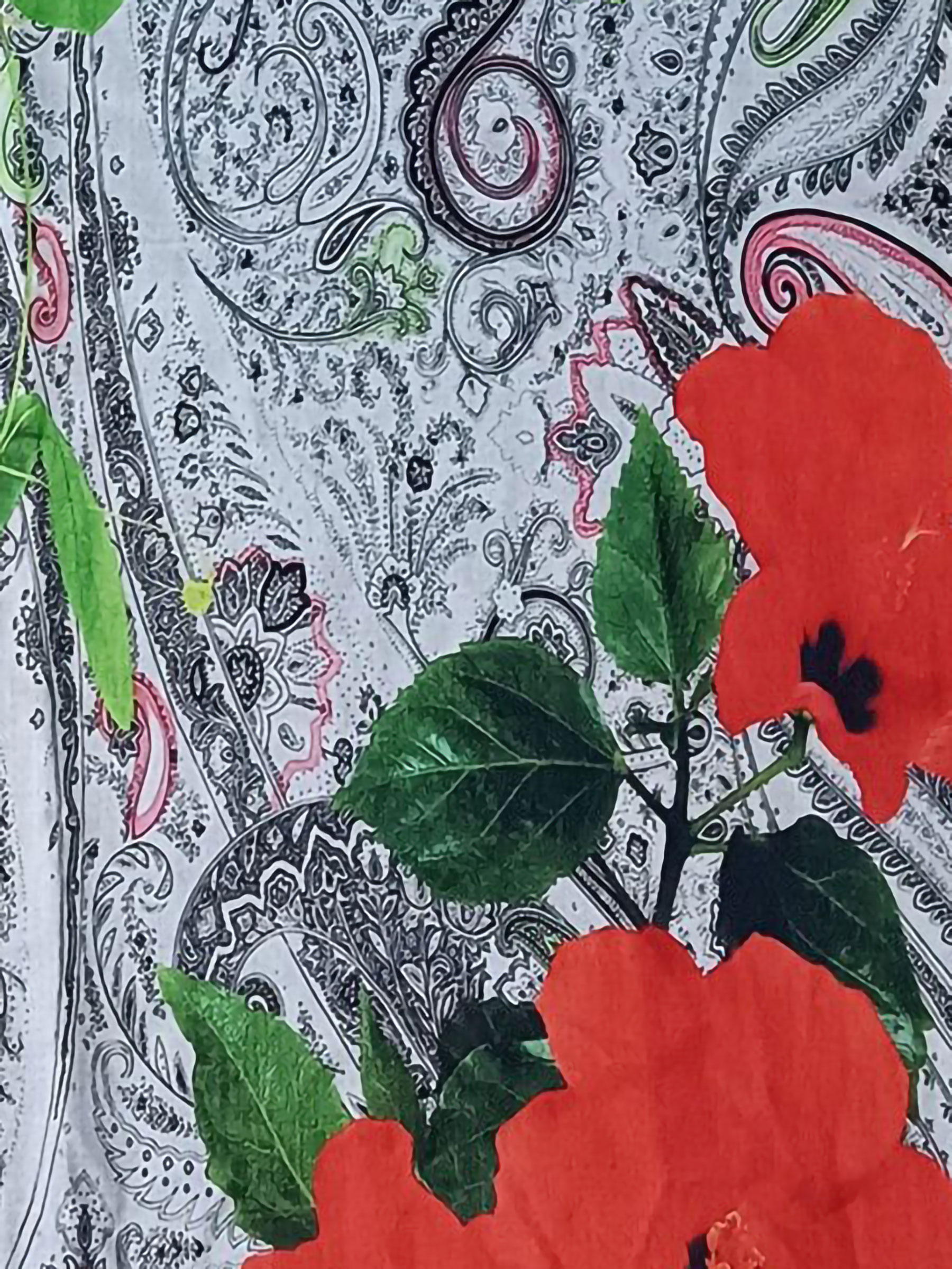 Detalles de bufanda flores hibisco y paisley HY-HWS-701