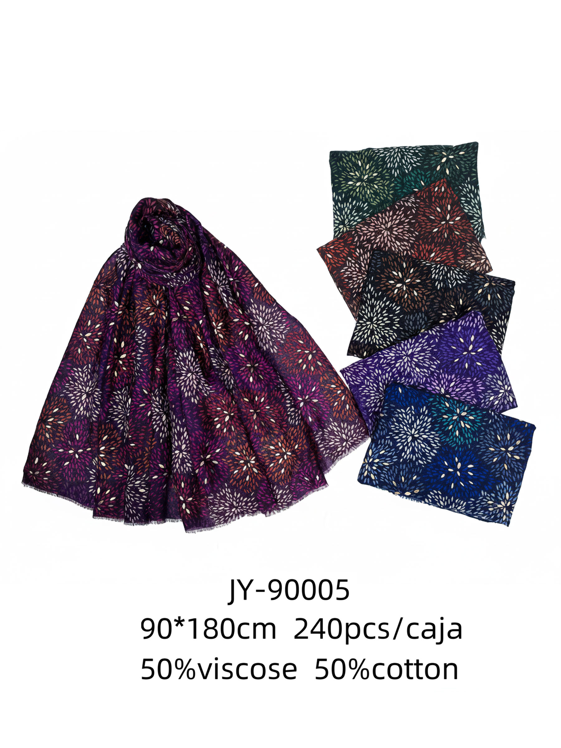 Precio I.V.A. no incluido, proveedor de bufandas y pañuelos venta al por mayor para tiendas.