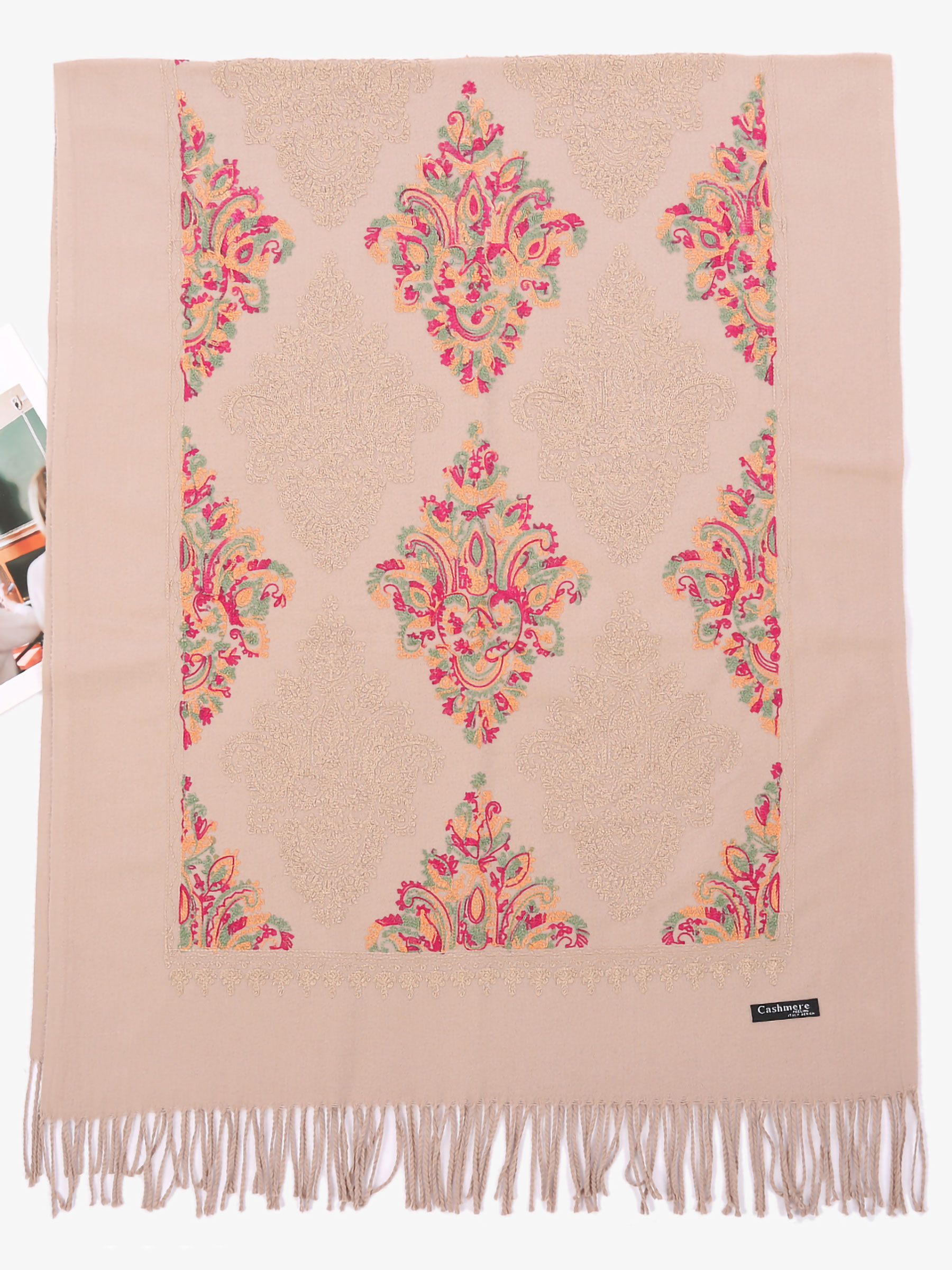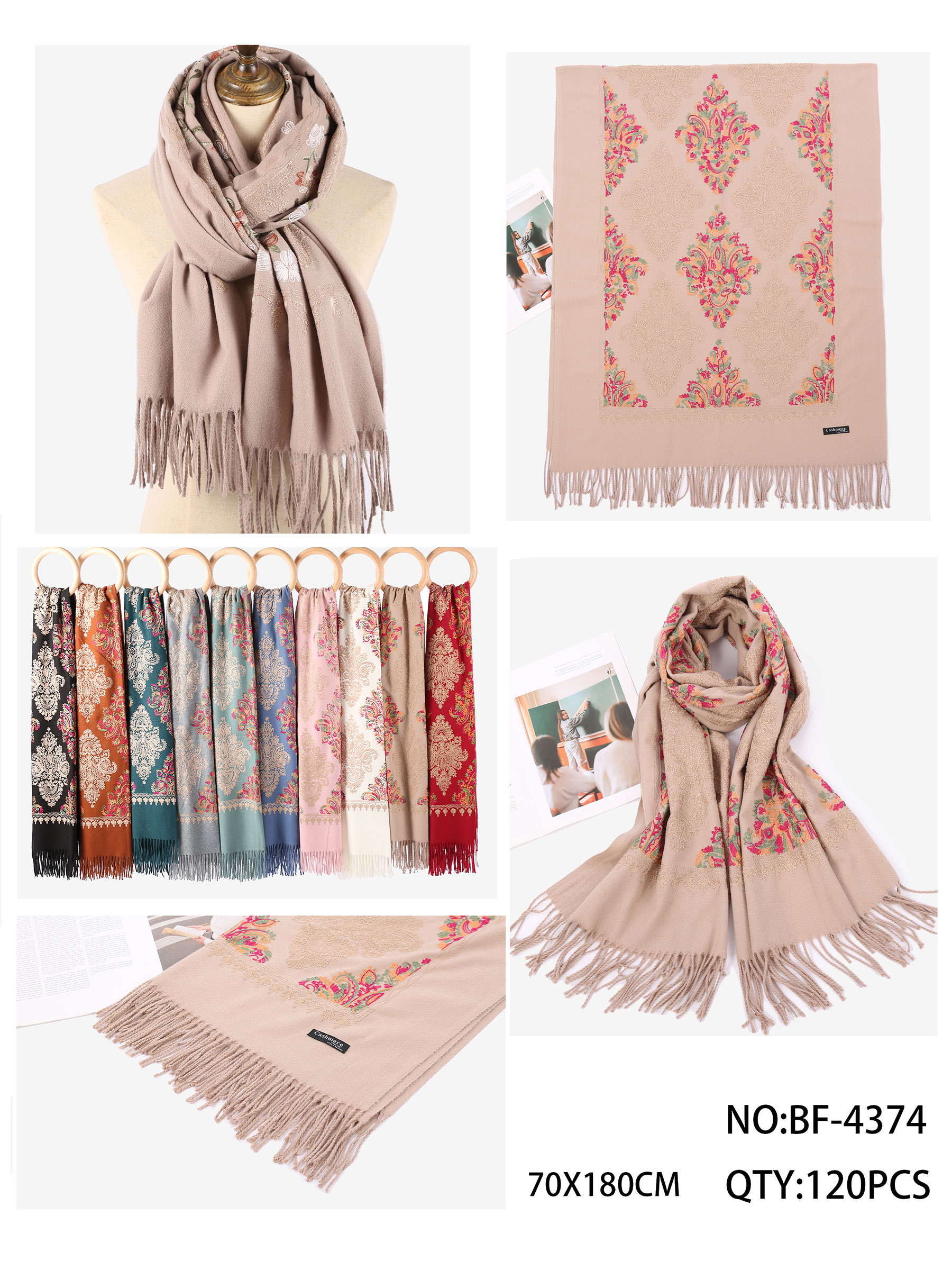 Detalles de bufanda bordada con flecos BF-BF-4374