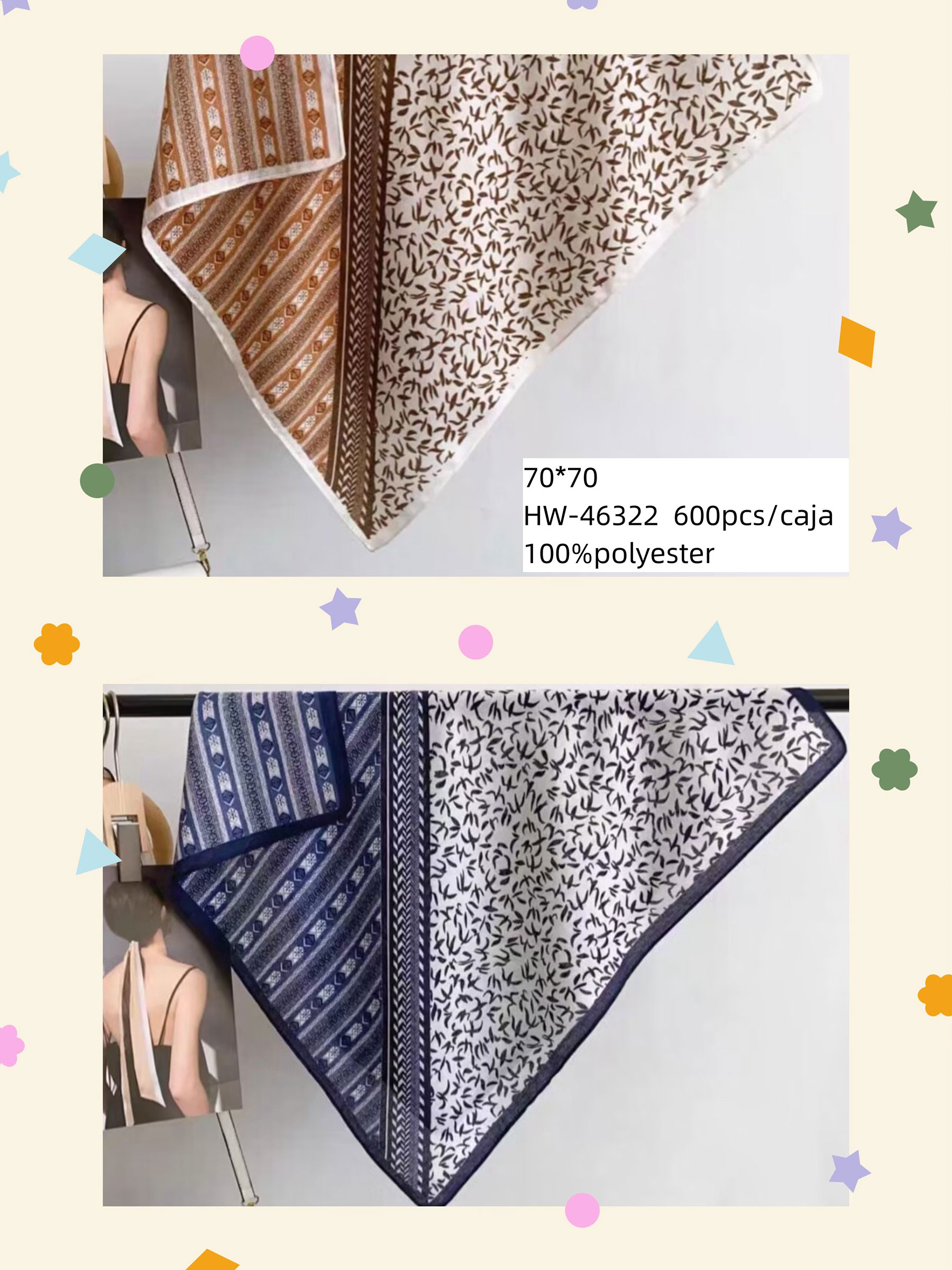 Detalles de pañuelo pequeño efecto seda cuadrado estampado contraste HY-HW-46322
