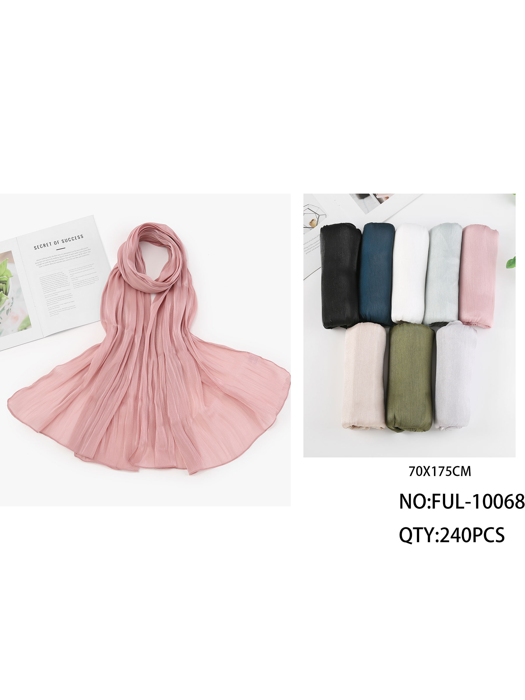 Fular liso plisado efecto seda