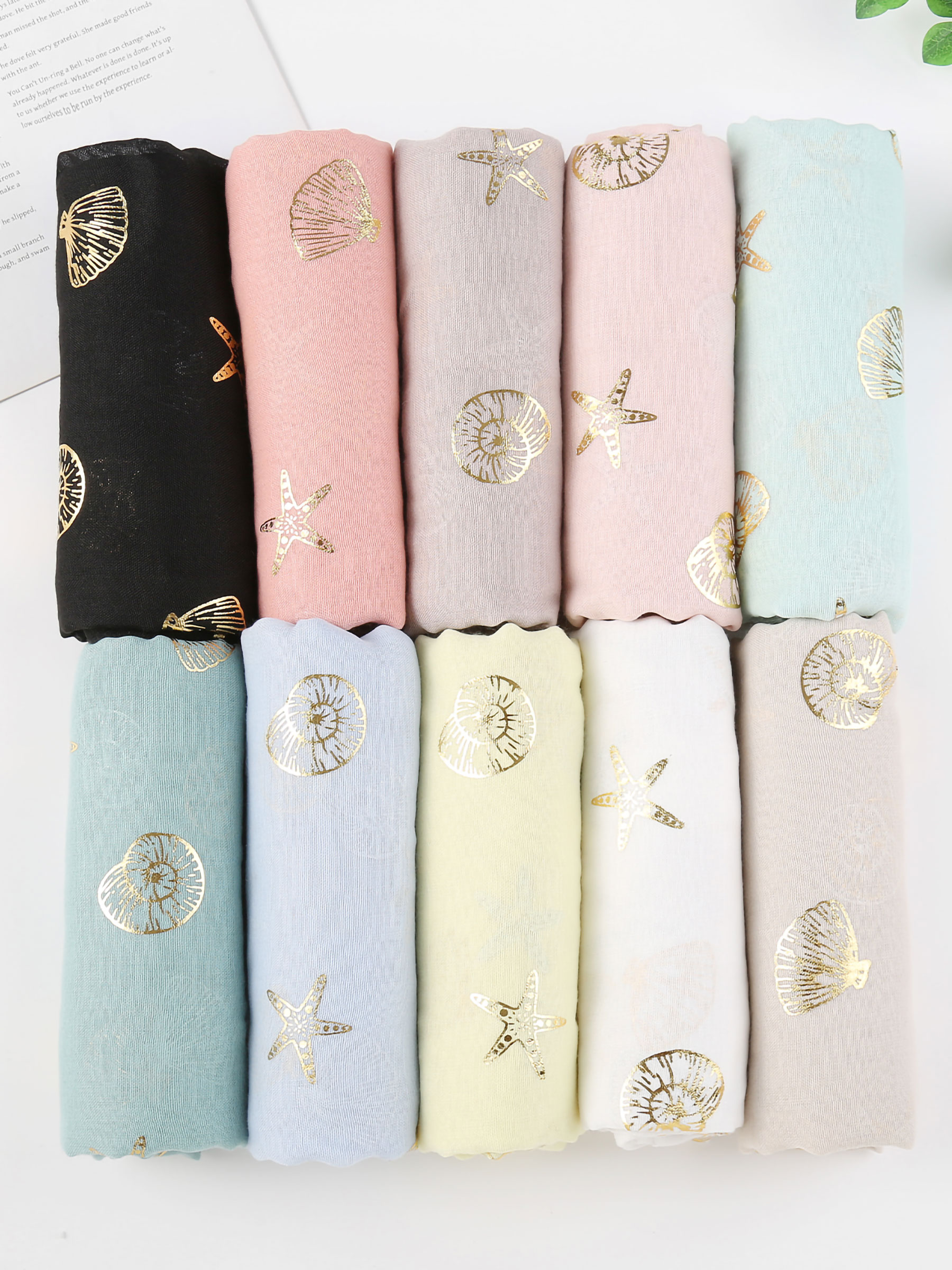 Fular marino conchas y estrellas doradas