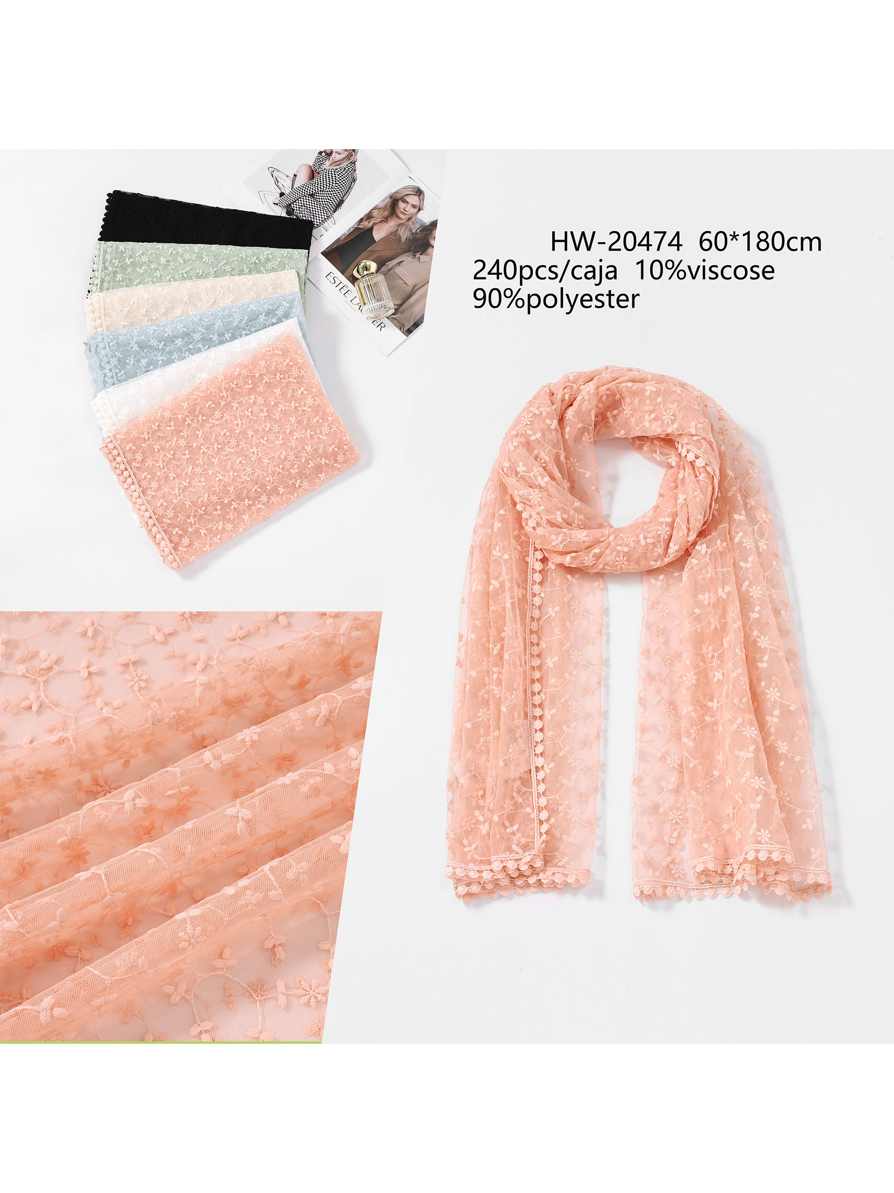 Fular bordado floral encaje