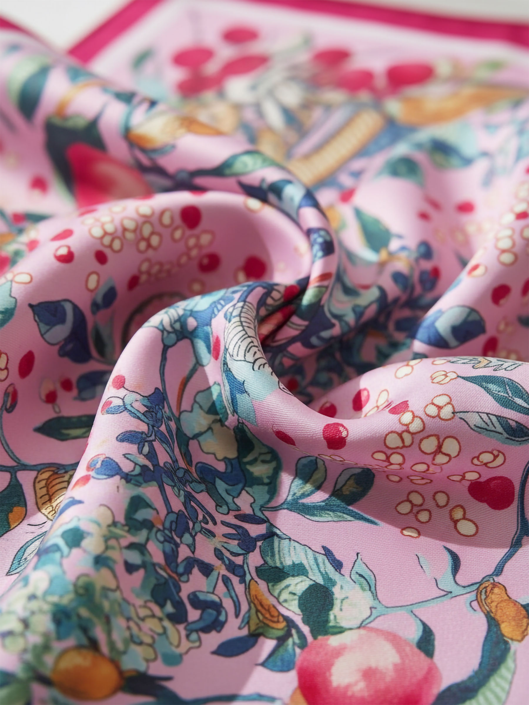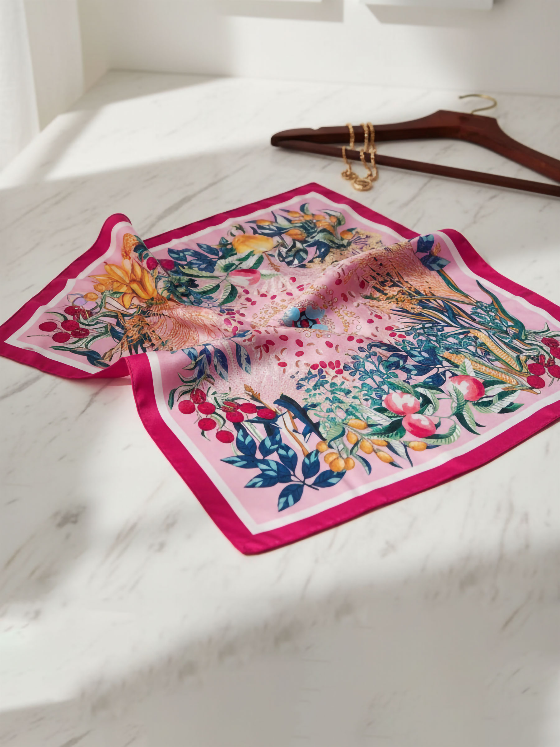 Pañuelo efecto seda cuadrado estampado botánico multicolor