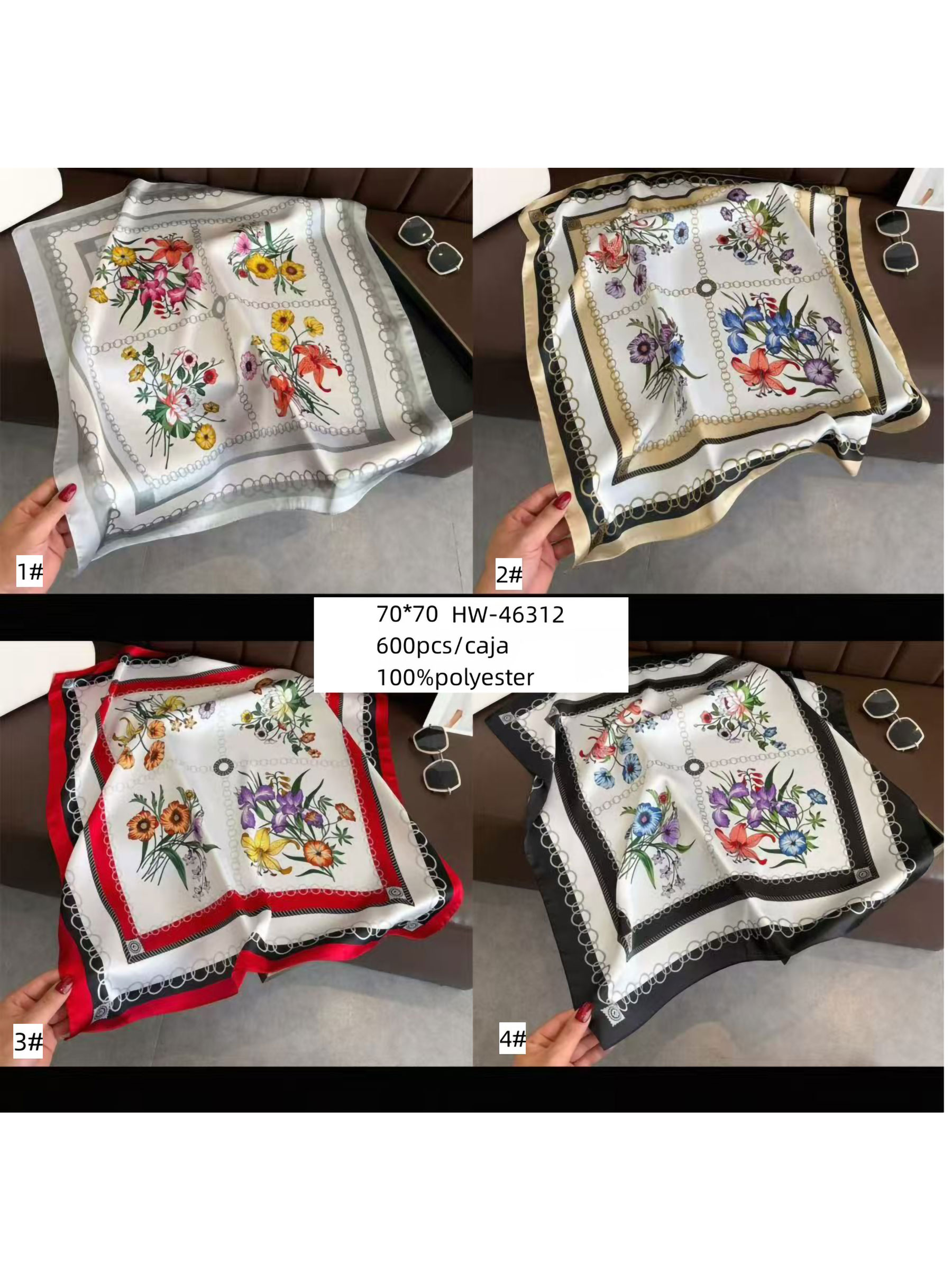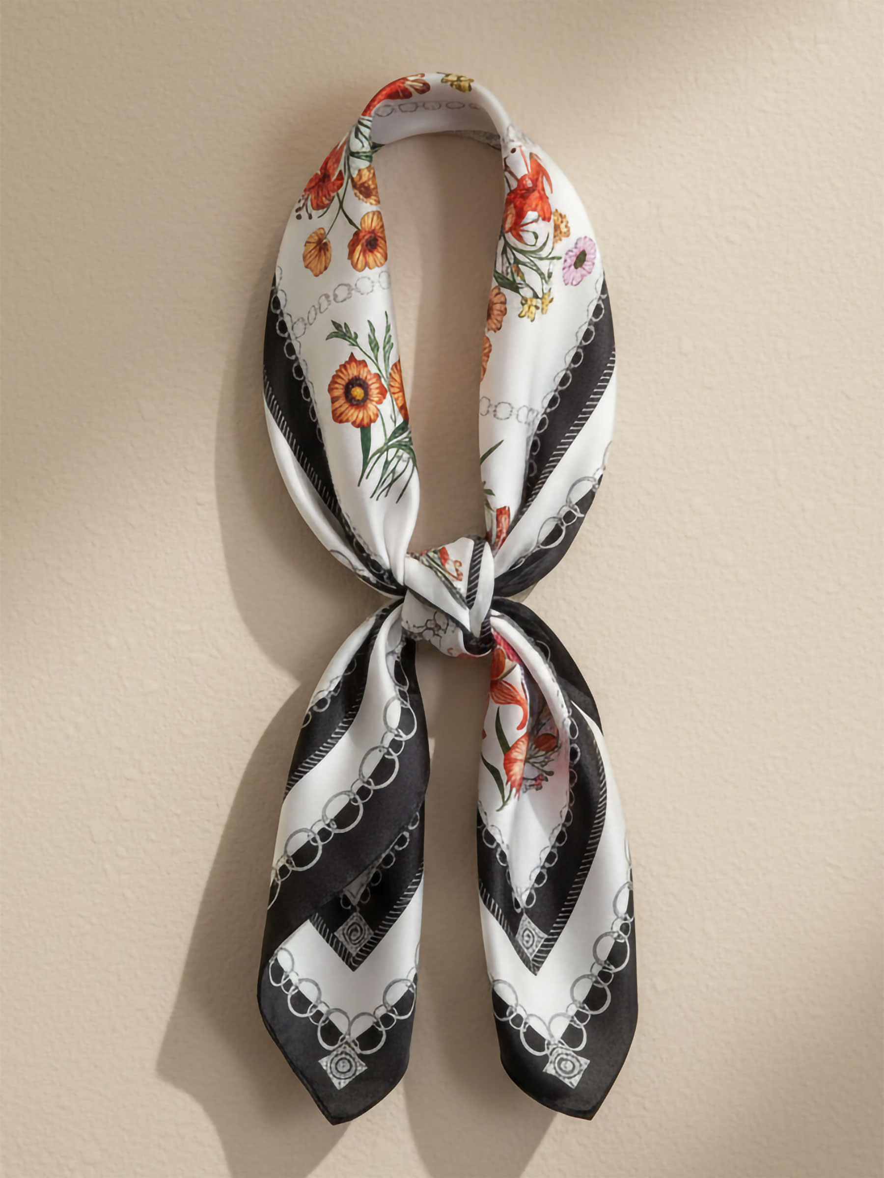 Pañuelo efecto seda cuadrado floral con marco de cadenas
