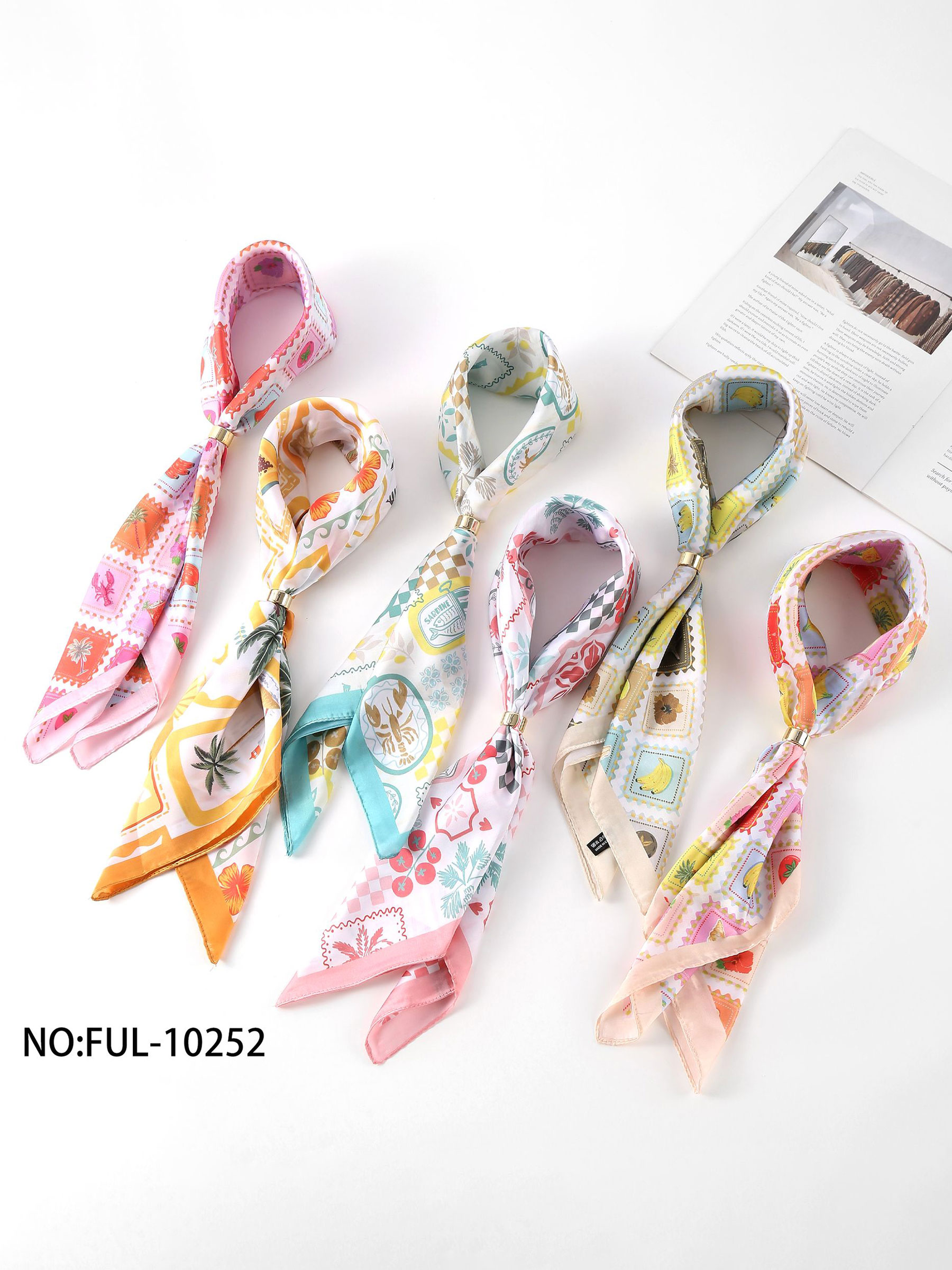 Pañuelo estampado, ideal para cuello, bolso o peinados. Colores surtidos.