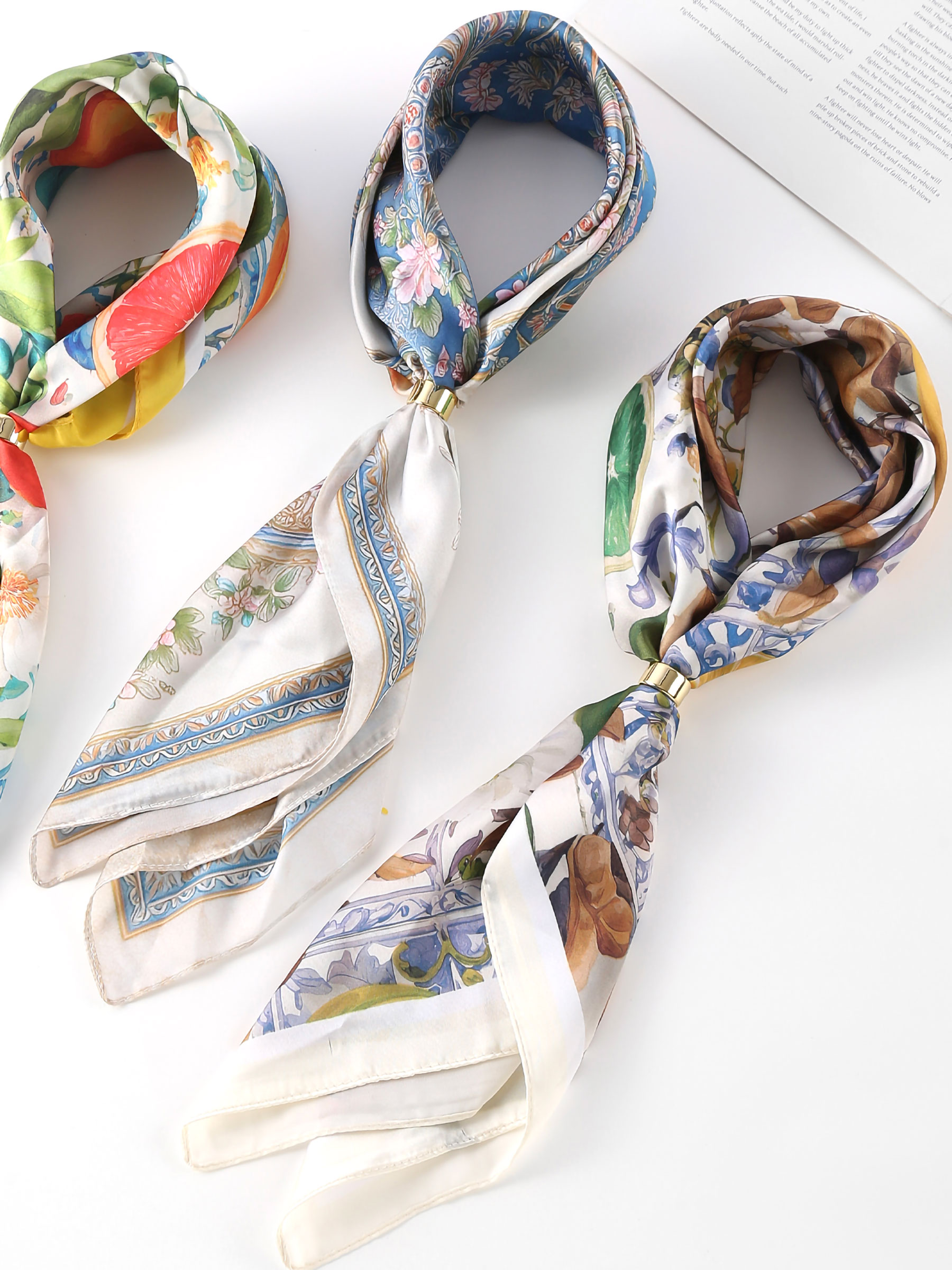 Pañuelo satinado estampado mediterráneo