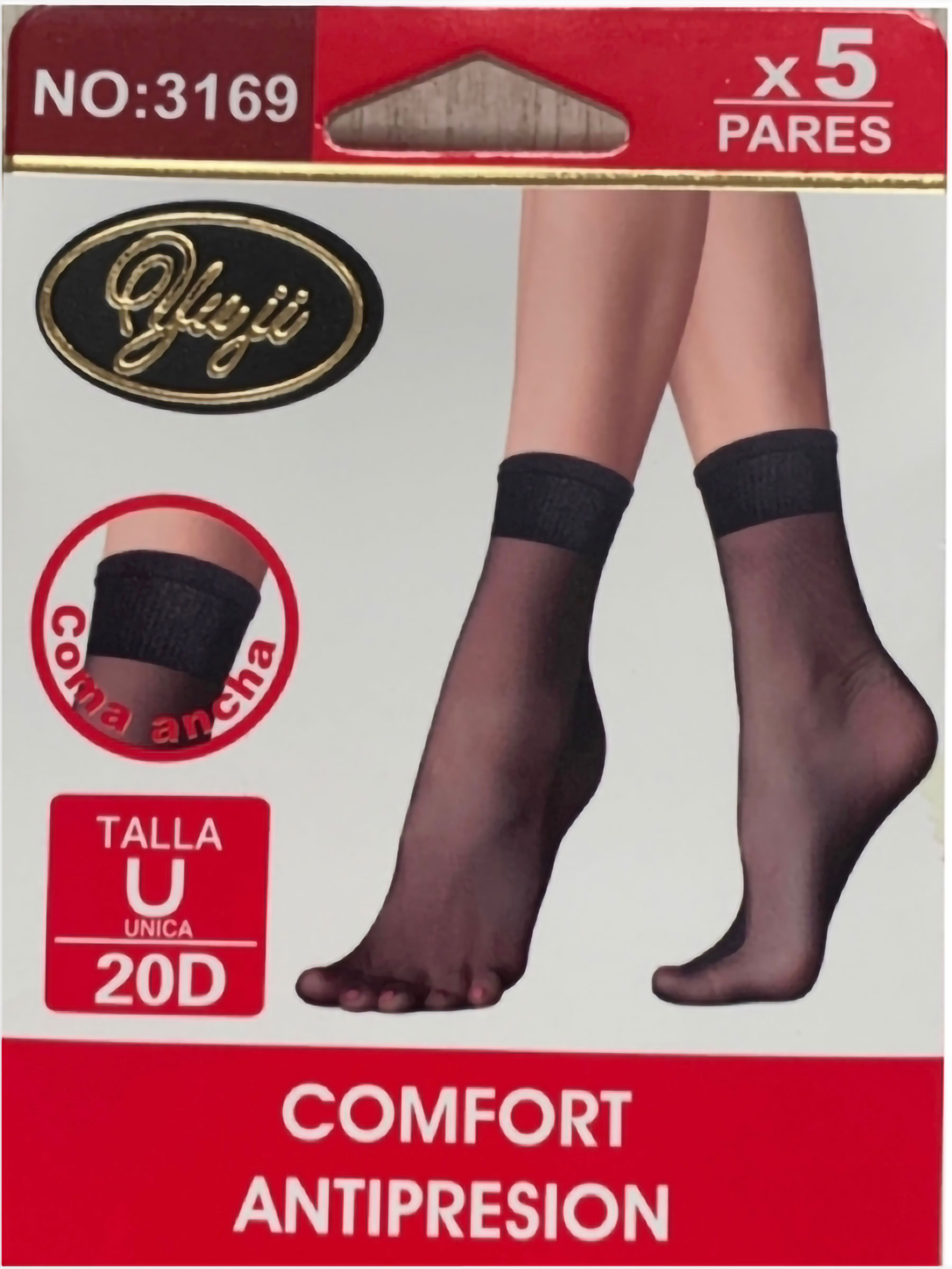 Detalles de calcetines tobillero 20 deniers puño confort pack 5 pares LE-3169