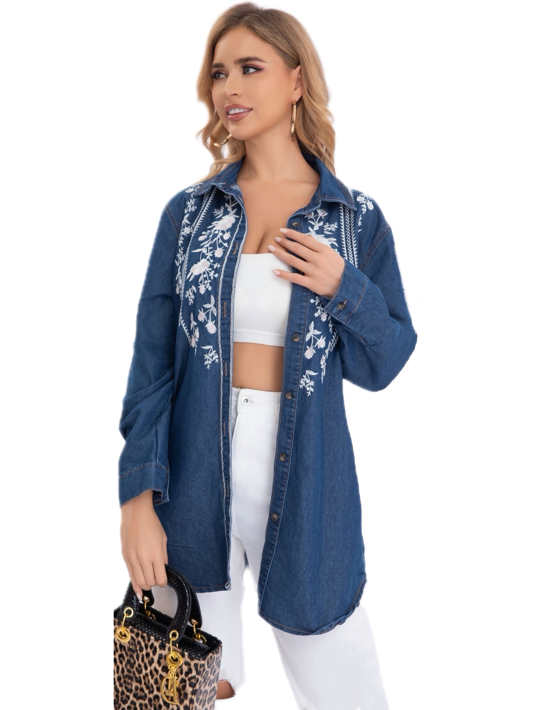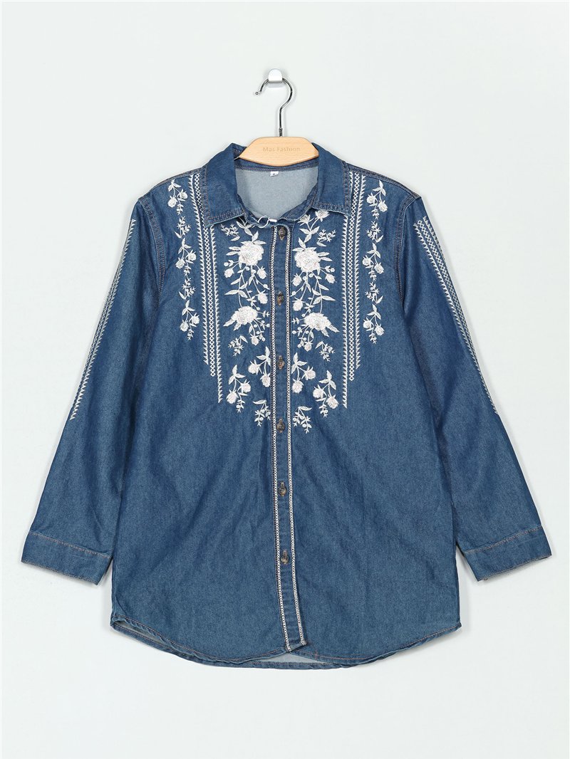 Detalles de camisa denim amplia bordada flores MF-B21882