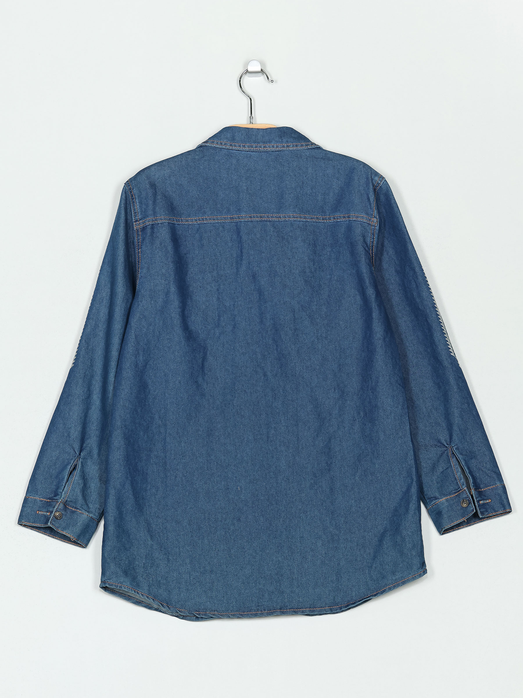 Camisa denim amplia bordada. Cuello solapa. Manga larga. Cierre mediante botones.