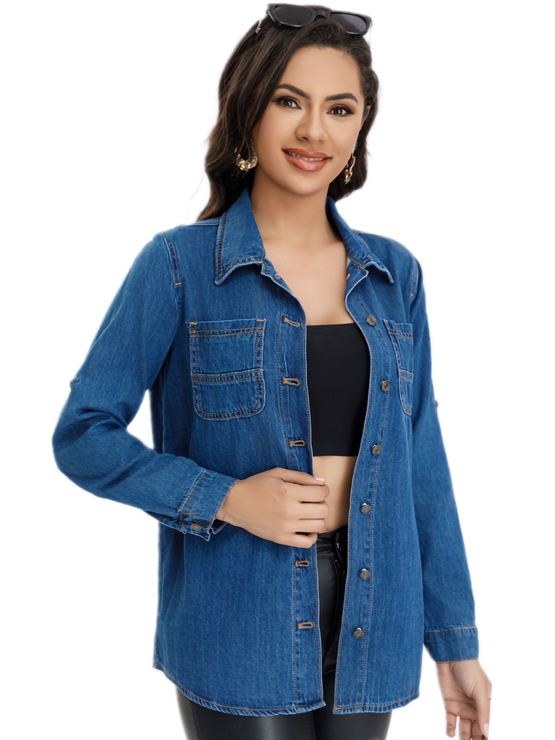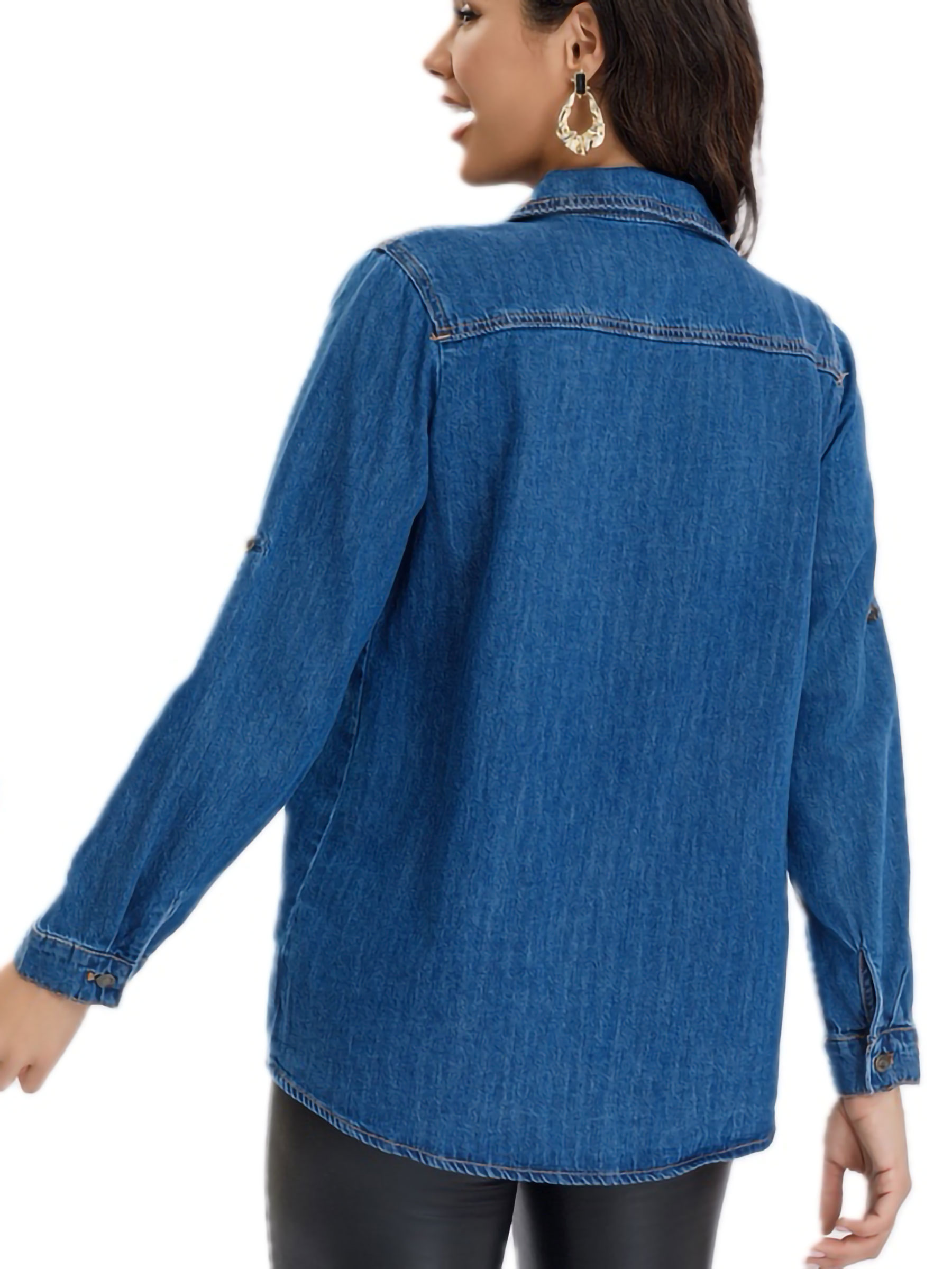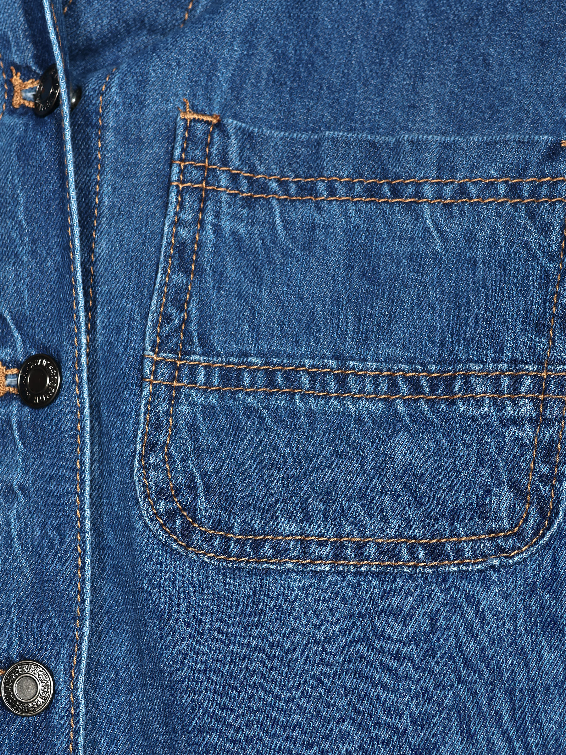 Camisa vaquera. Bolsillo de plastrón en pecho. Tejido no elástico. Cuello solapa. Manga larga. Cierre con botones.
