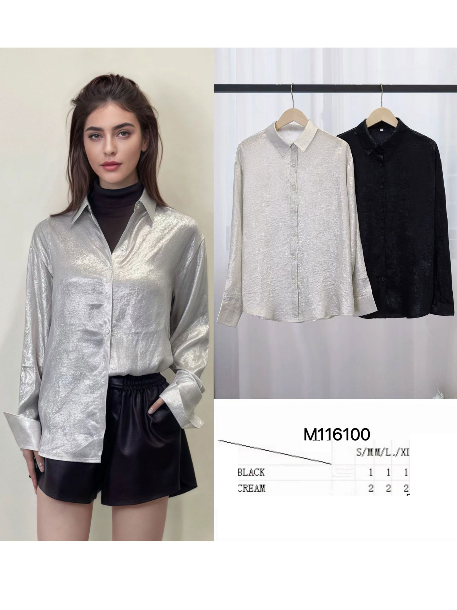 Detalles de camisa metalizada LS-M116100