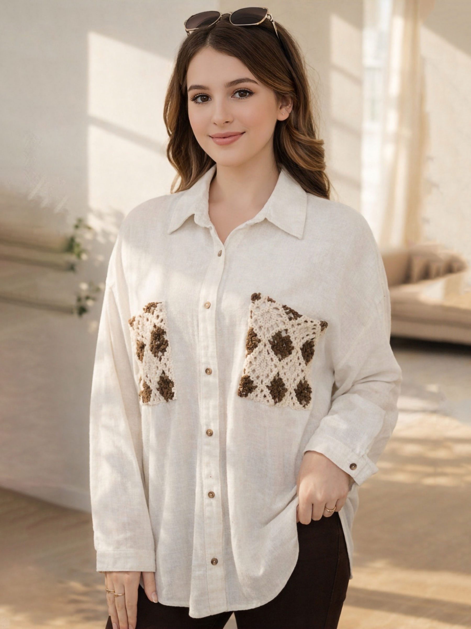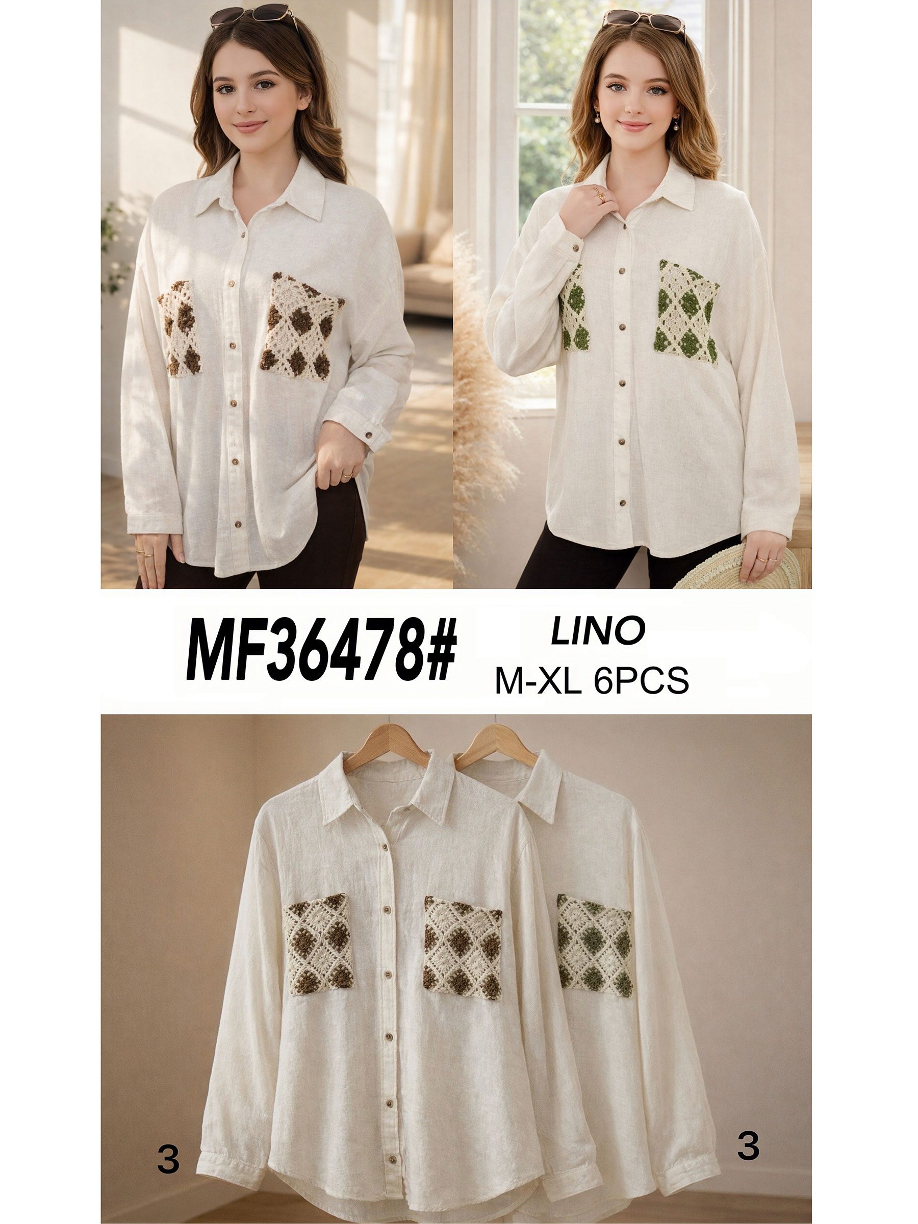 Sobrecamisa de efecto lino. Cuello solapa. Manga larga. Cierre de botones. Bolsillos de parche con crochet.