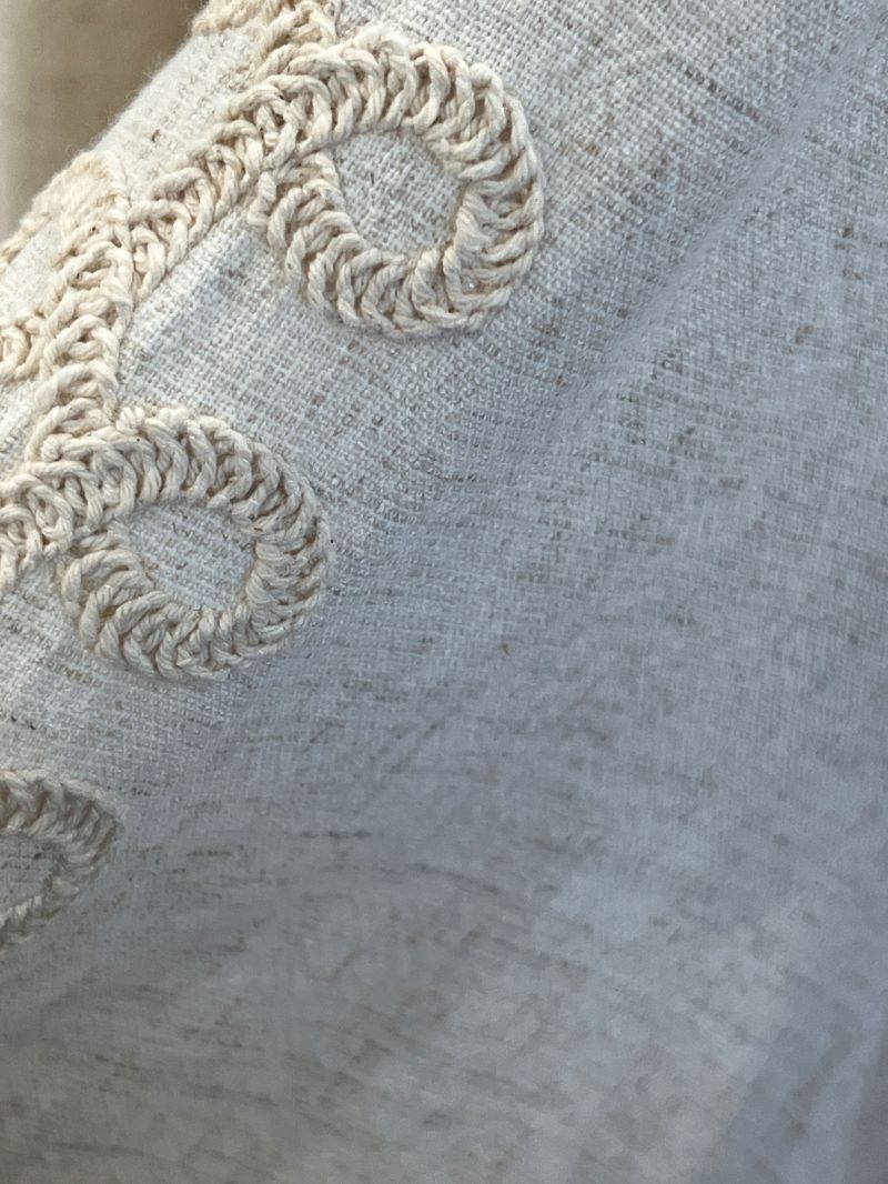 Camisa de efecto lino. Cuello solapa. Manga larga. Cierre de botones. Pliegues delanteras. Bordados en mangas.