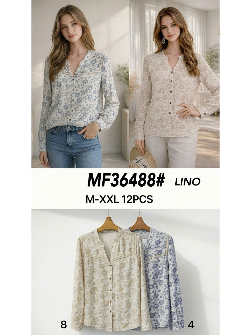Camisa lino estampada encaje