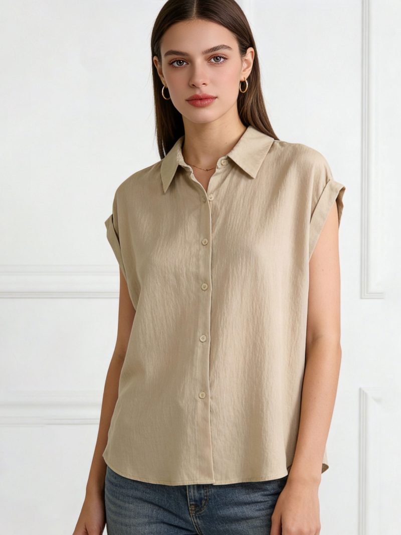 Nuevo Mín. 5 Camisas Blusa efecto lino con mangas de volante y broche joya NS-GY523 Tallas: M/L-XL/XXL.Colección: Primavera/Verano 2026. Ver precio